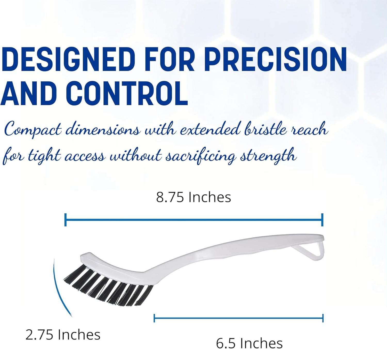 - Stiff nylon bristles effectively remove tough stains and grime from grout lines and other hard-to-reach areas