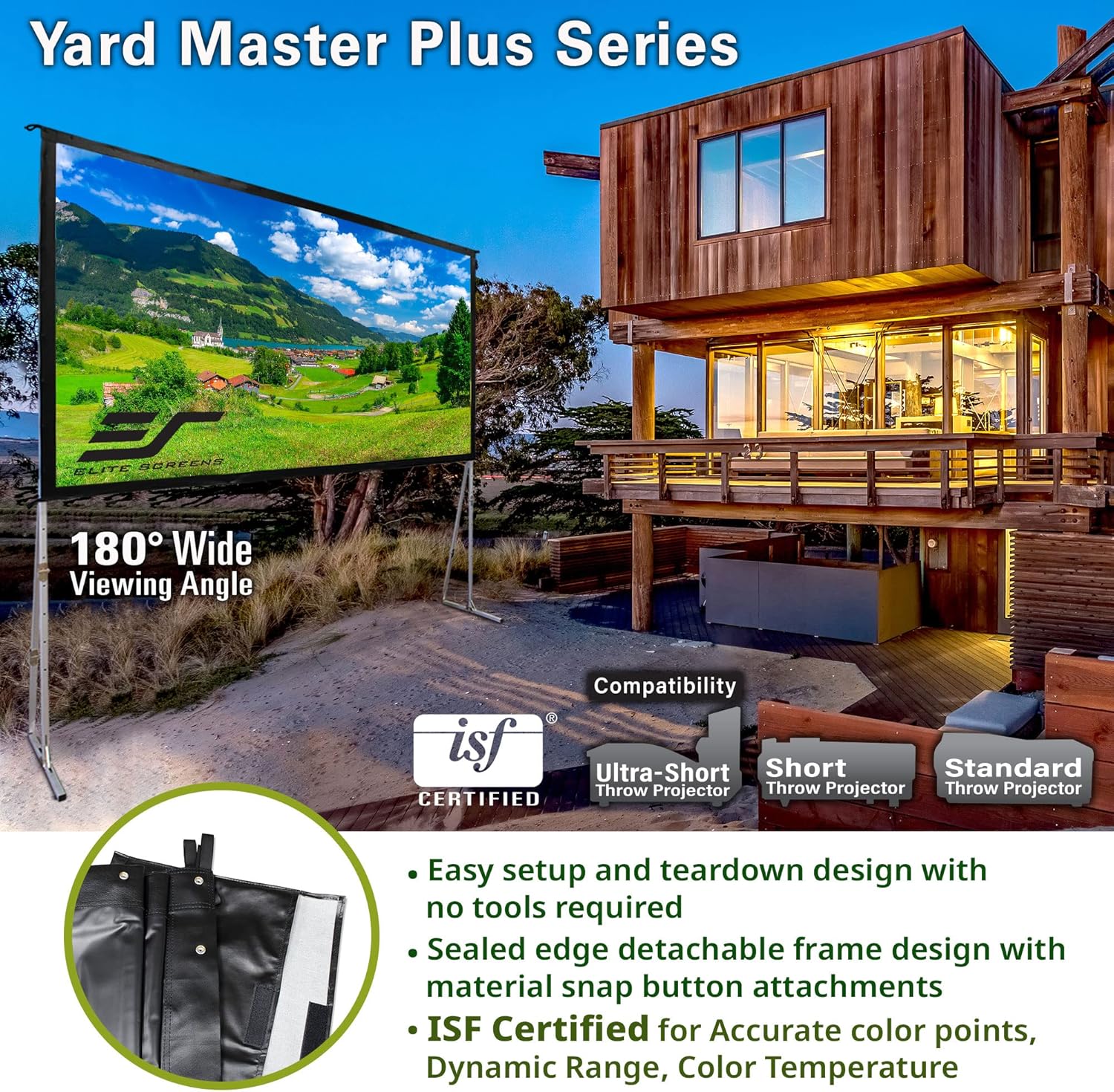 Elite Screens Yard Master Plus, 200-INCH 16:9 Height Setting Adjustable Portable Projector Screen, 4K HD Outdoor Indoor Movie Theater Front Projection, US Based Company 2-YEAR WARRANTY, OMS200H2PLUS