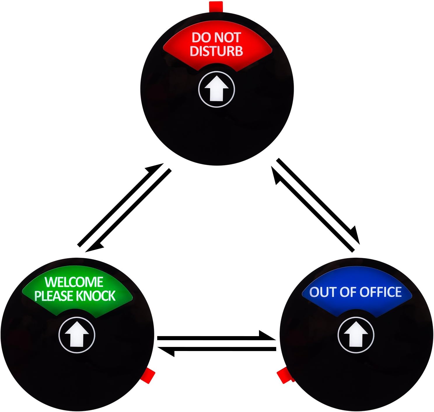 - Easy to switch between DO NOT DISTURB, WELCOME PLEASE KNOCK and OUT OF OFFICE, but the status will remain unchanged unless you change it manually because inside the sign there are small magnets that will keep the status stay in place
