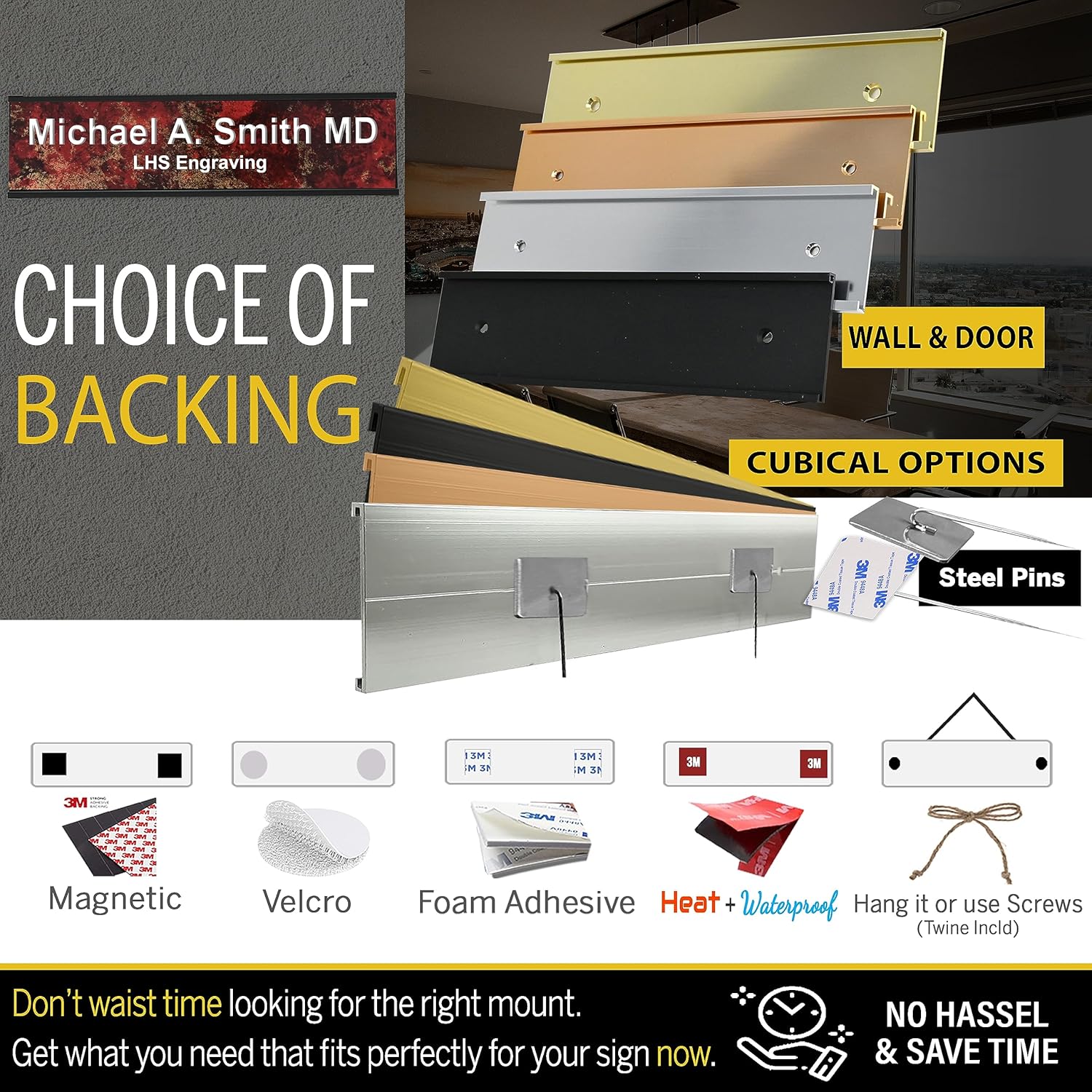- π‘ Click Personalize: Add 3 lines of text | Option to add a desk, wall or a door holder or choose adhesive, hanging, cubicle pins, or all weather adhesive option