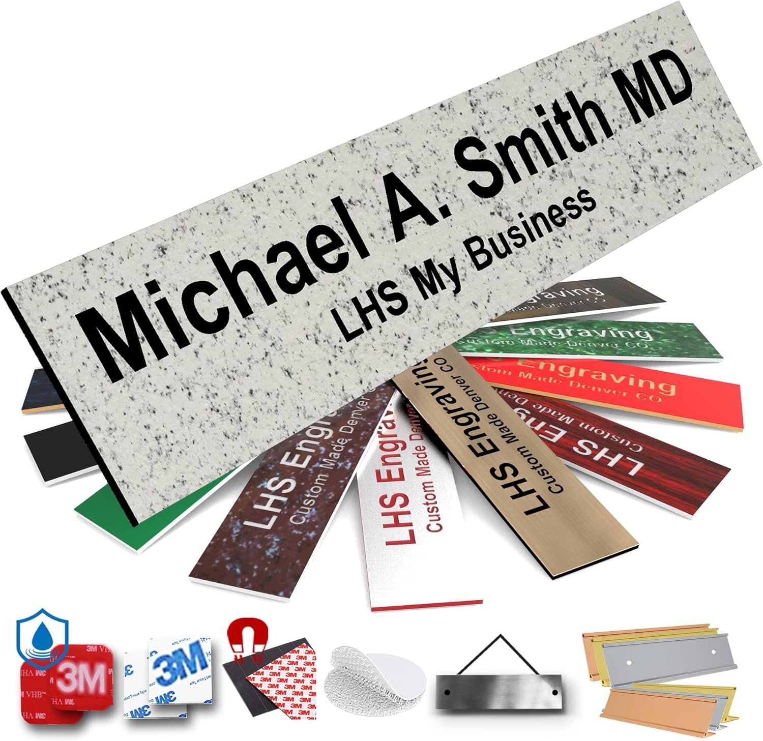 Door Name Plate Personalized for Office Stone Granite Plastic Name Plate Black Letters - Made in USA 2x10 S3