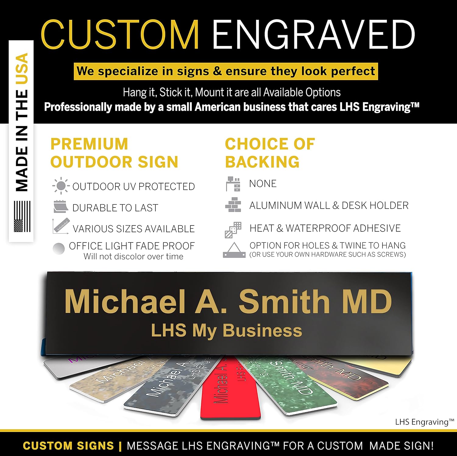 Engraved Door Signs for Office Personalized Black Plastic Door Plaque Gold Letters - Made in USA 2x10 B3