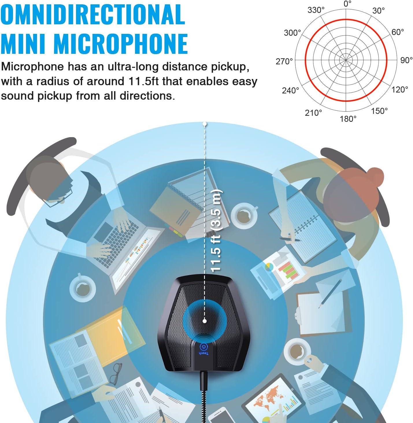 - Omnidirectional Microphone - It is not a Speaker or Speakerphone, it is a condenser microphone. The microphone has an omnidirectional pickup pattern with a pickup distance of 11.5 ft, making it easy to capture the most subtle sounds from 360° directions and transmit the sound more loud and clear. Participants can hear each other without raising their voices.