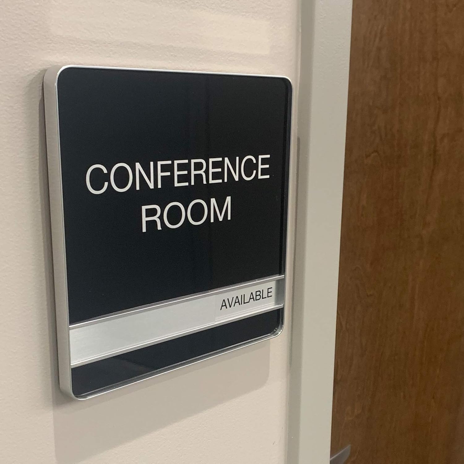 NapTags Conference Room Slider Signs (Black - Silver Frame, 6" x 6")