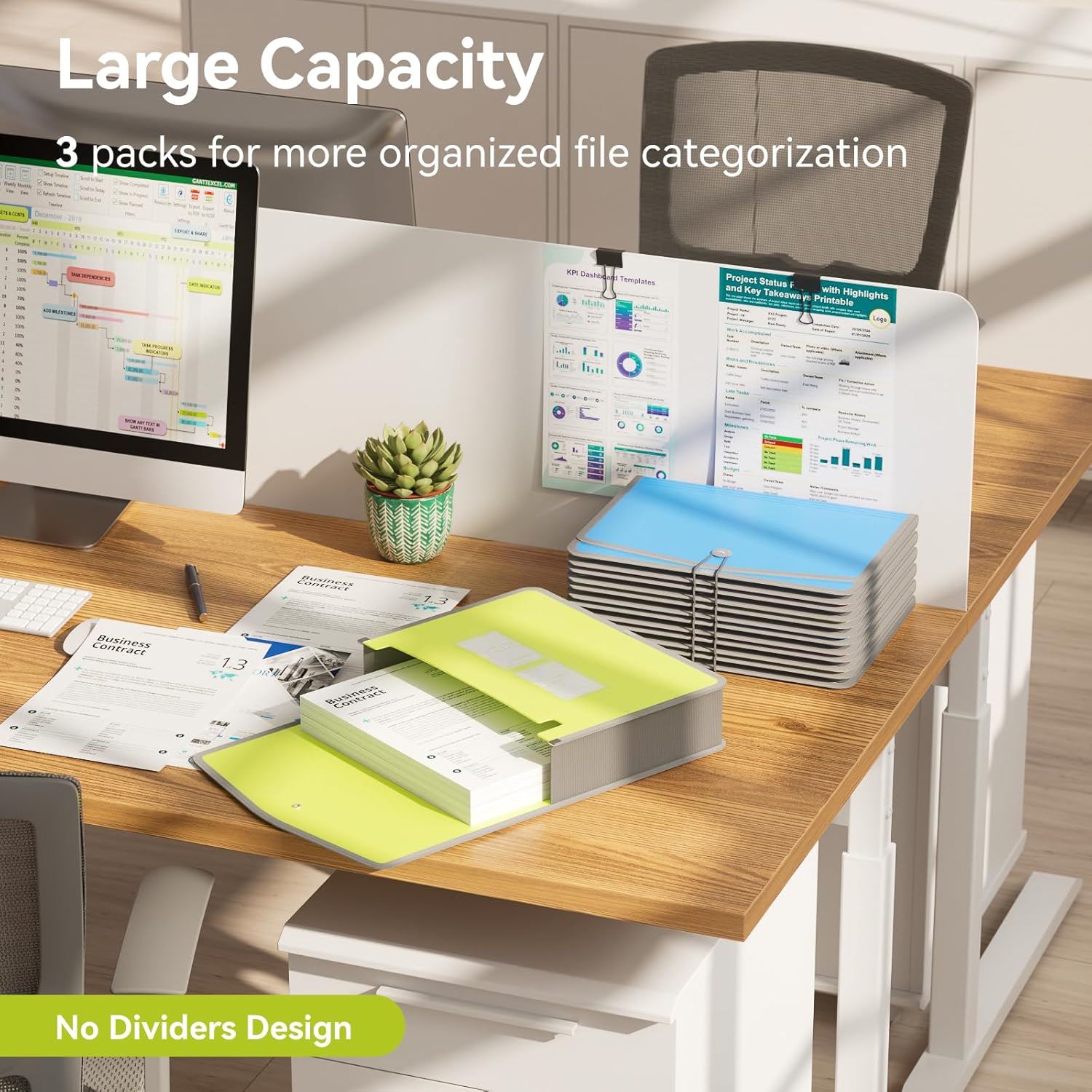 - 3 Pack File Folder Large Capacity: Super Sized & Organized! Get ready to declutter your desk with these massive plastic file folders! Each folder measures a whopping 13" x 10" — bigger than standard A4 — and expands up to 3.1 inches thick, holding an incredible 1000 sheets of paper. Includes Blue, Green, and Rose Red. Perfect for color-coding projects, subjects, or priorities.