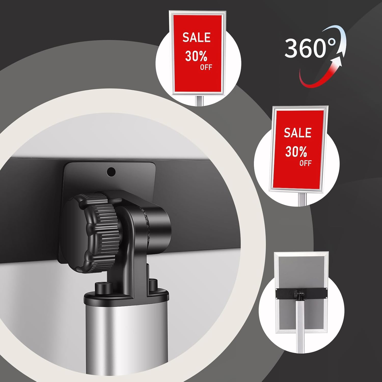 - Heavier Pedestal,More Stable Sign Holder Stand- Improve this sign stand,we use more thick and heavier pedestal to hold poster more stable,total weight 11 lbs ,thicken pole can withstand strong wind.A rubber band is supplied together with the base to protect your floor.
