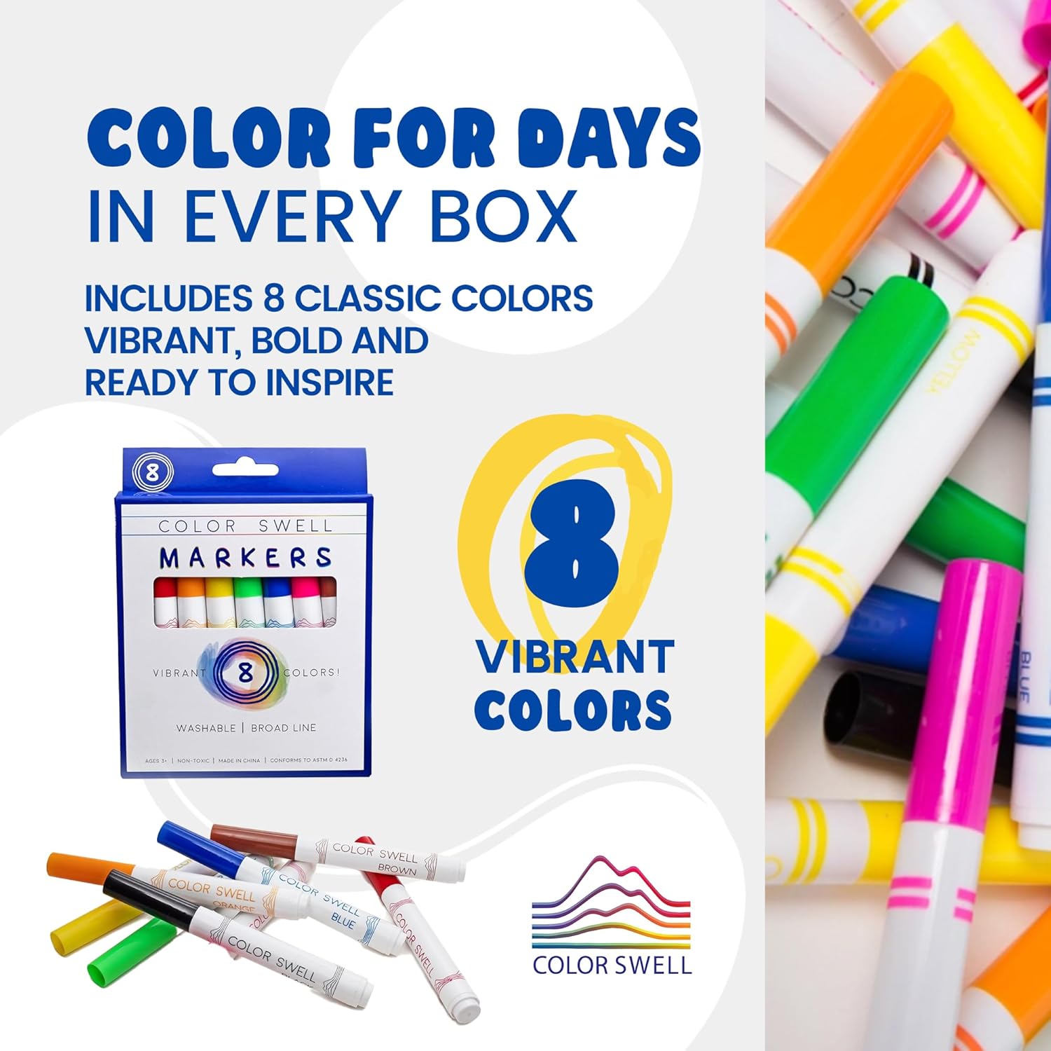 Color Swell 8-Pack Broad Line Markers – Washable, Non-Toxic, Ideal for Kids, Students, Adults, and Classroom Activities