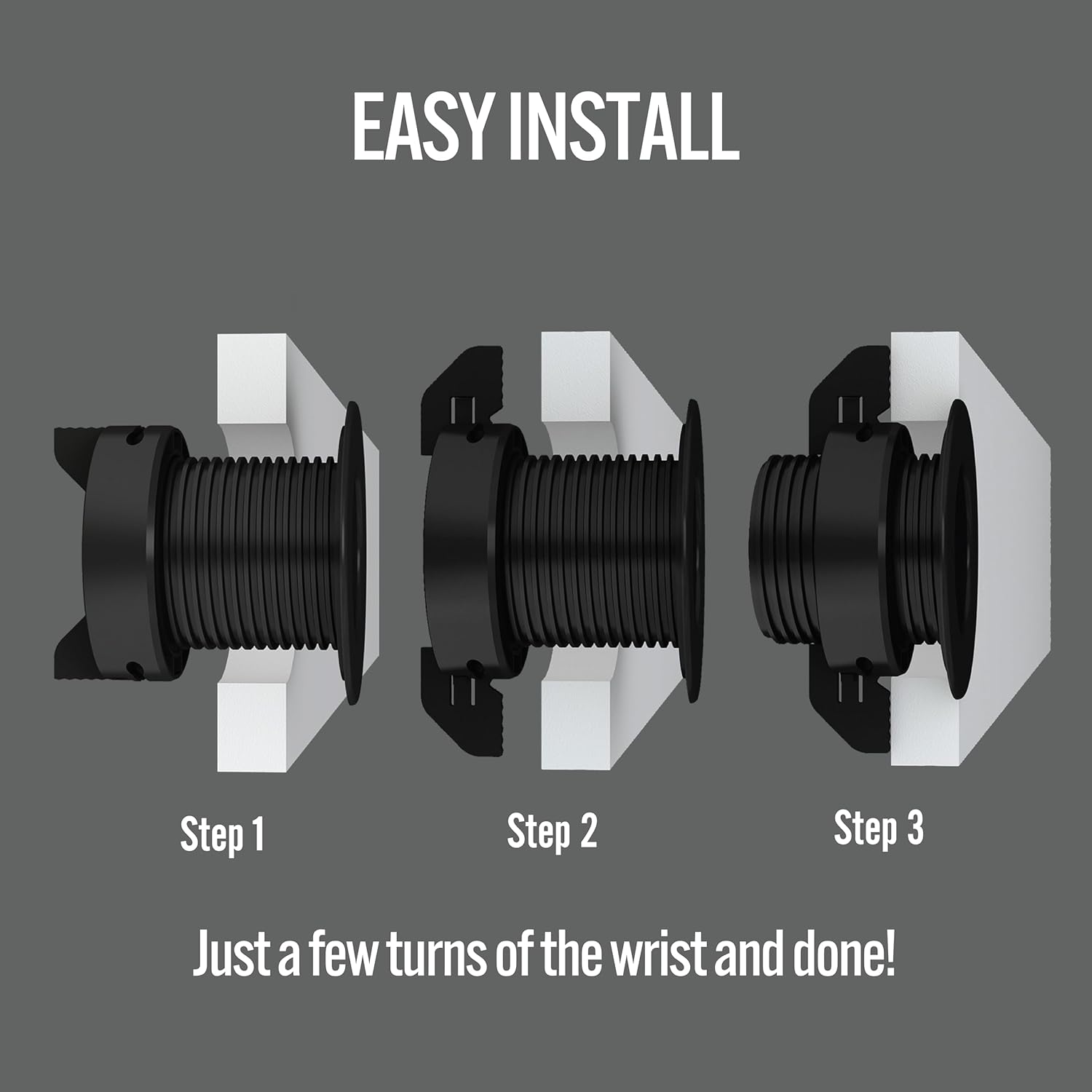 (2-Pack Black) Cable, Wire & Cord Management - Self Locking Grommet with Cover for Walls, Ceilings, Desks, Used for All Surfaces 3/8” to 1” Thick, Made in USA