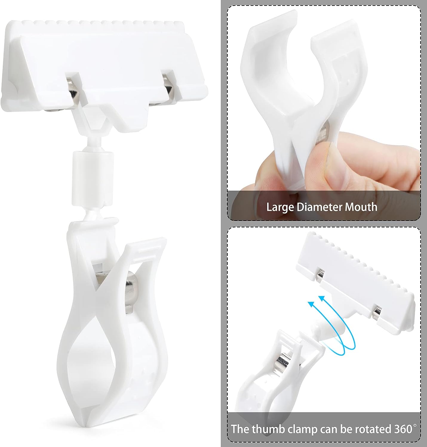 - Strong Clamping Force: With super clamp mouth, rotatable clip allows you to adjust it at optimal position, easy to clamp, to rack or shelf. Suitable for cylindrical objects, plates, square tubes, partitions, round tubes, etc. Objects with a diameter or thickness not exceeding 2.5 cm