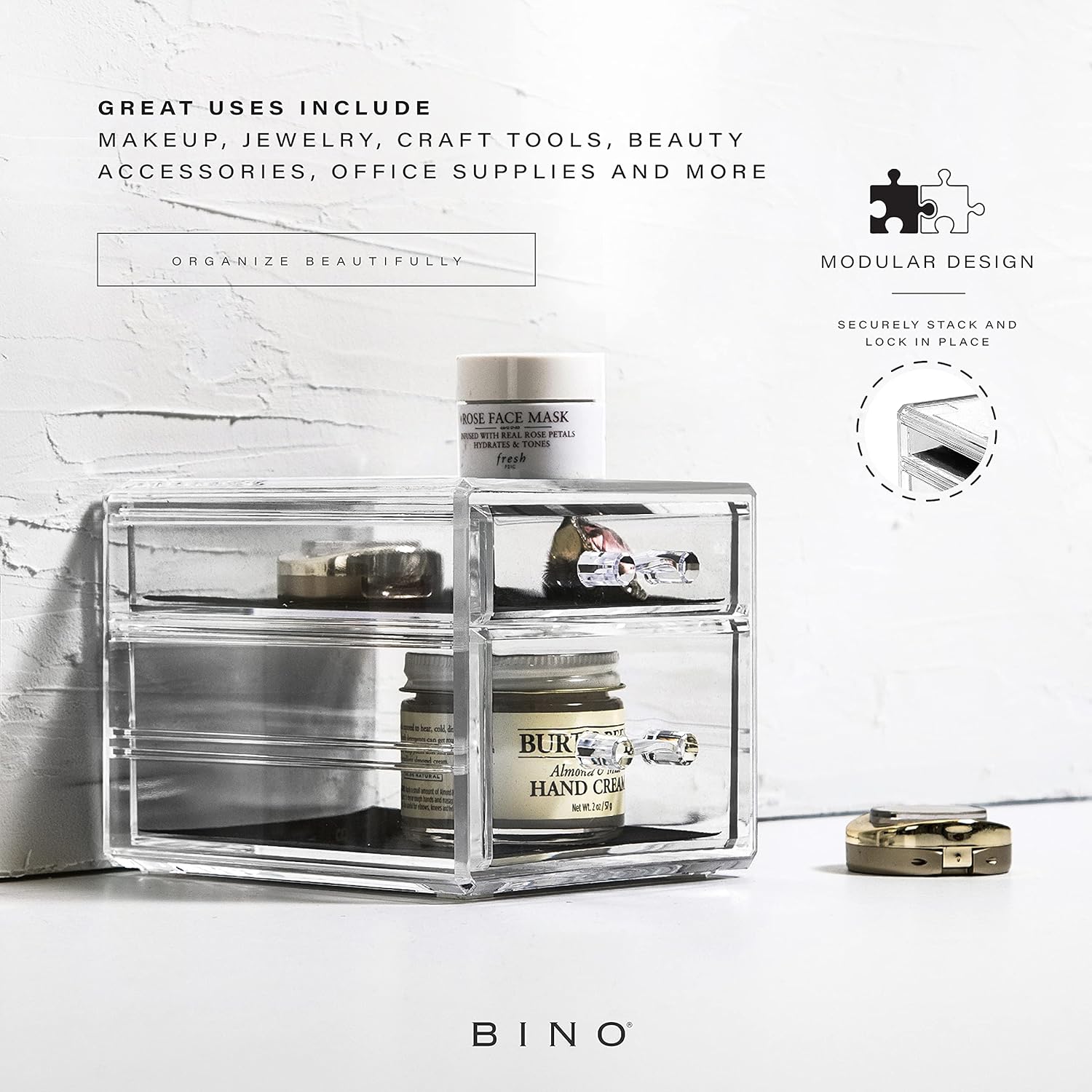 BINO THE MANHATTAN SERIES Acrylic Makeup Drawer Organizer- 2 Drawer Small | Clear Beauty Organizers and Storage| Cosmetic & Makeup Drawer| Home Organization| Jewelry & Vanity Accessories Drawer