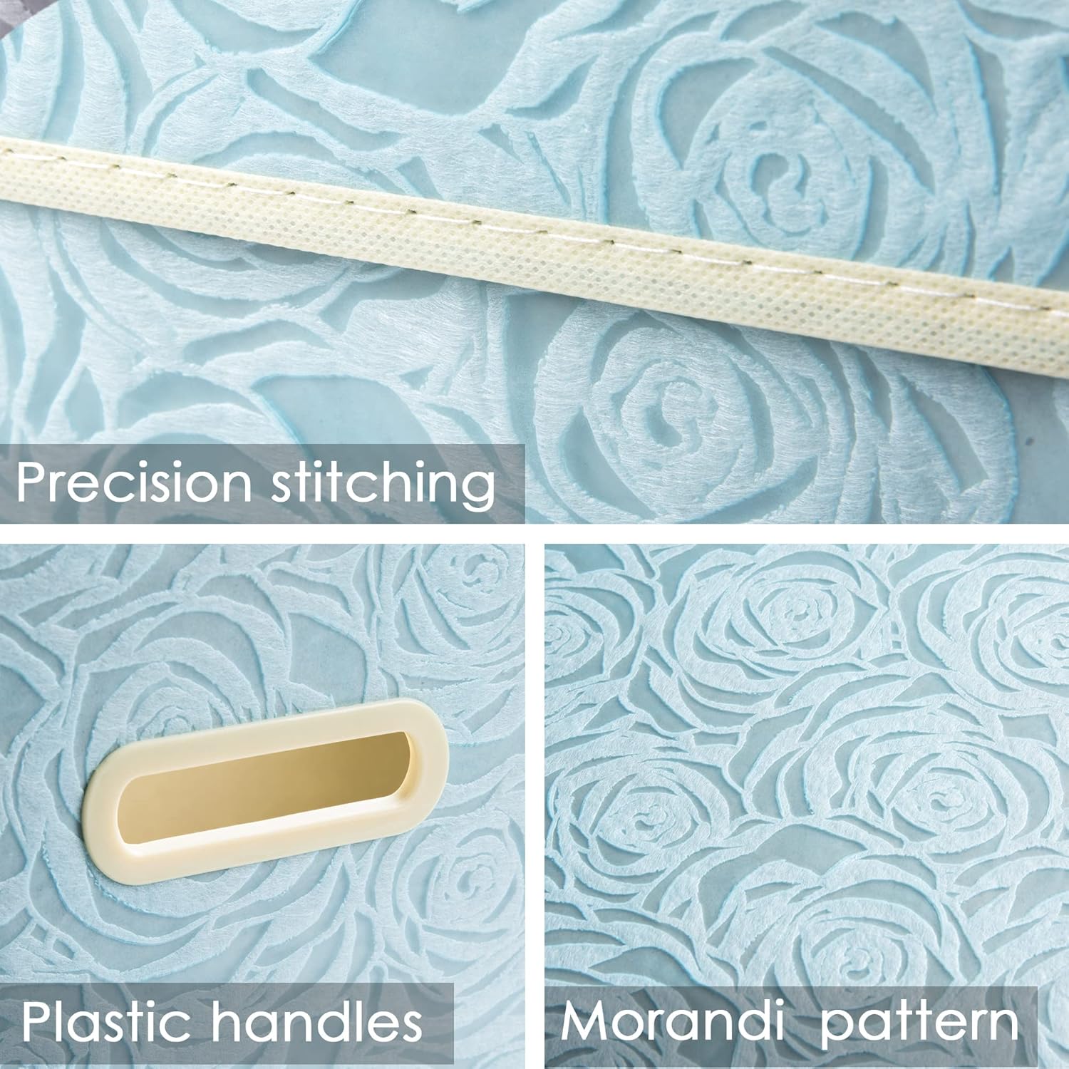 - 【Fashionable Bins】Designed to match interior decor and style in any room in the home or office. Enjoy the relaxing ambiance of the soft blue and natural white color scheme.