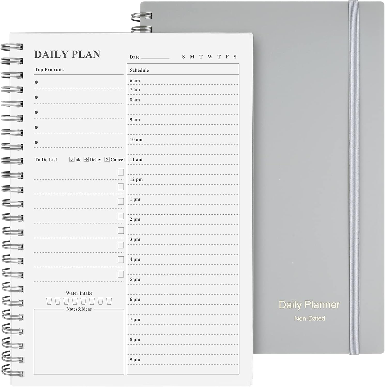 - Work Smarter with Daily Task Management: Each page includes space for 5 top priorities, 8 to do list,daily schedule from 6am-9pm, notes&ideas and water intake.Break your day into hours and help you work effective.