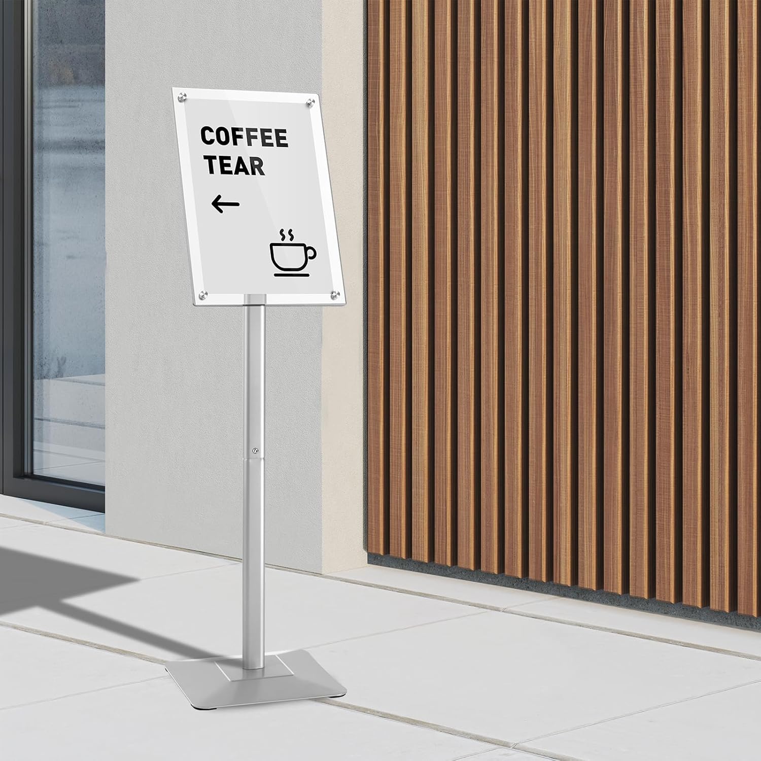 - Heavier Pedestal,More Stable Sign Holder -Floor sign stand with more thick and heavier pedestal to hold poster more stable,total weight 11 lbs ,thicken pole can withstand strong wind.Acrylic frame with heavy base features excellent durability and exquisite look.