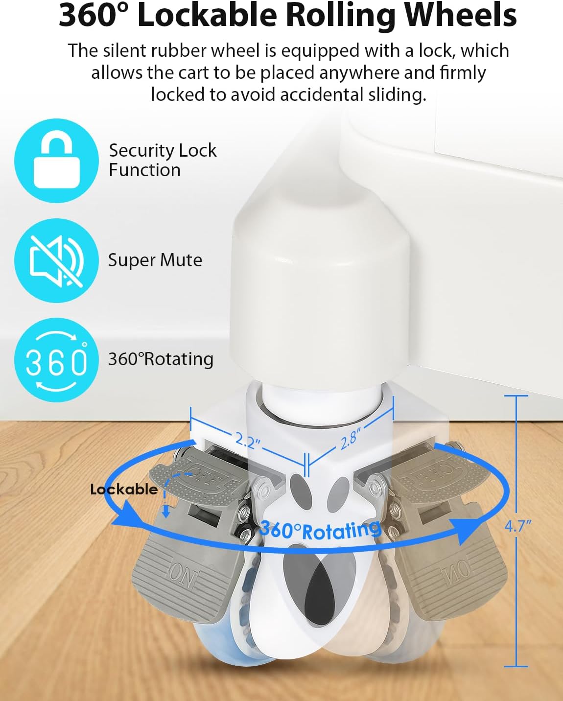 - Lockable Quiet Rolling Cart: The multifunctional rolling trolley is equipped with four 360° rotation silent wheels, which are secure and quiet, and can be flexibly pushed in any direction, providing excellent maneuverability and stability, saving you effort and making your work easy. Among them, the front two rubber wheels have a locking function, soft rubber is shockproof, hard-wearing, and is easy to be fixed in an adapted position stably.