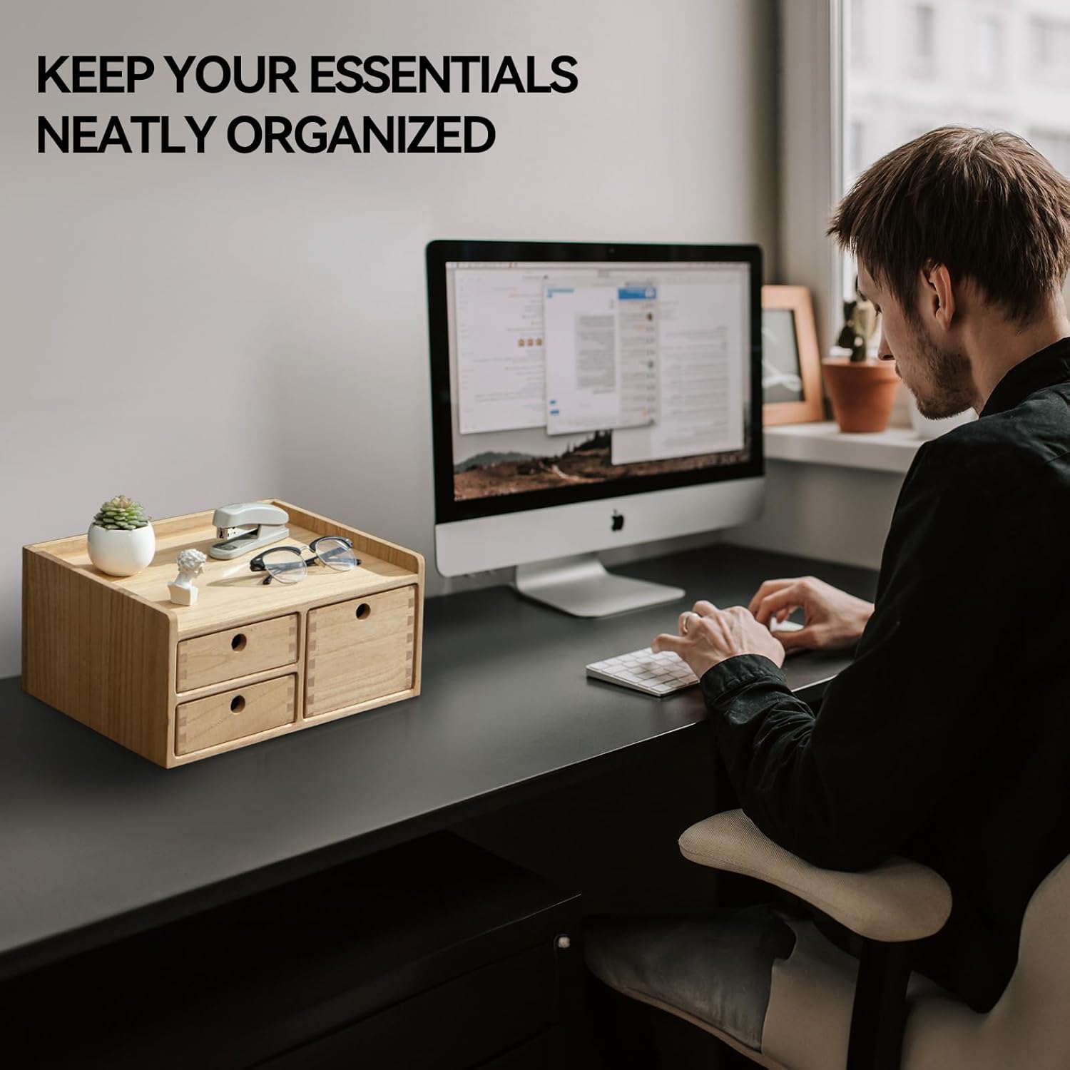 - [EXQUISITE WORKMANSHIP]: The desk organizer is made of selected real wood, the texture is clear and natural, exquisite workmanship,hand polishing.