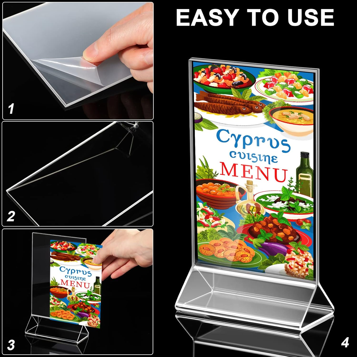 - Stable Acrylic Holder: the table card display holder are made of quality clear acrylic material, T shape design offers excellent support so that the holder can stand firmly on any flat surface, protecting content from stains or scratches, and the paper will not come out and fall off easily