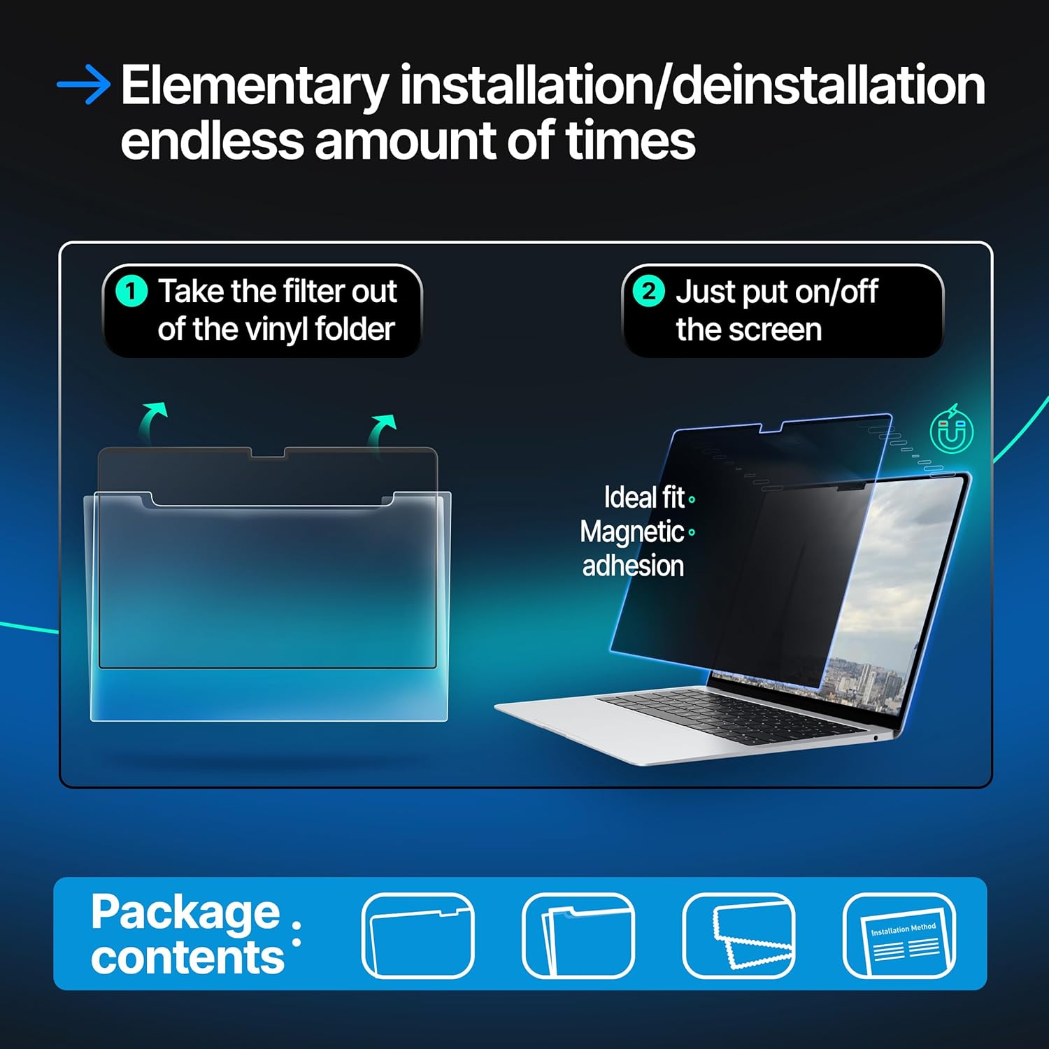 - Easy Installation: The computer screen privacy filter attaches magnetically. Simply snap it on, remove, or reattach as needed, ensuring superior eye protection without damaging your screen
