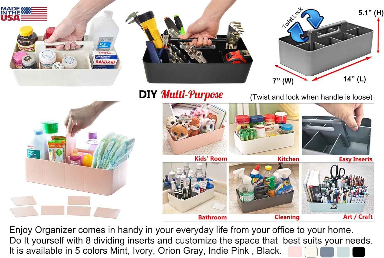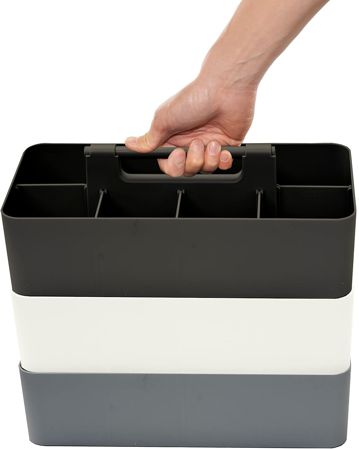 -Large Portable Caddy, DIY Dividers, 8 Compartments, School Office Supplies Business Organizer,Portable Basket with Handle Made in USA (3 PACK, Black/Gray/Ivory)