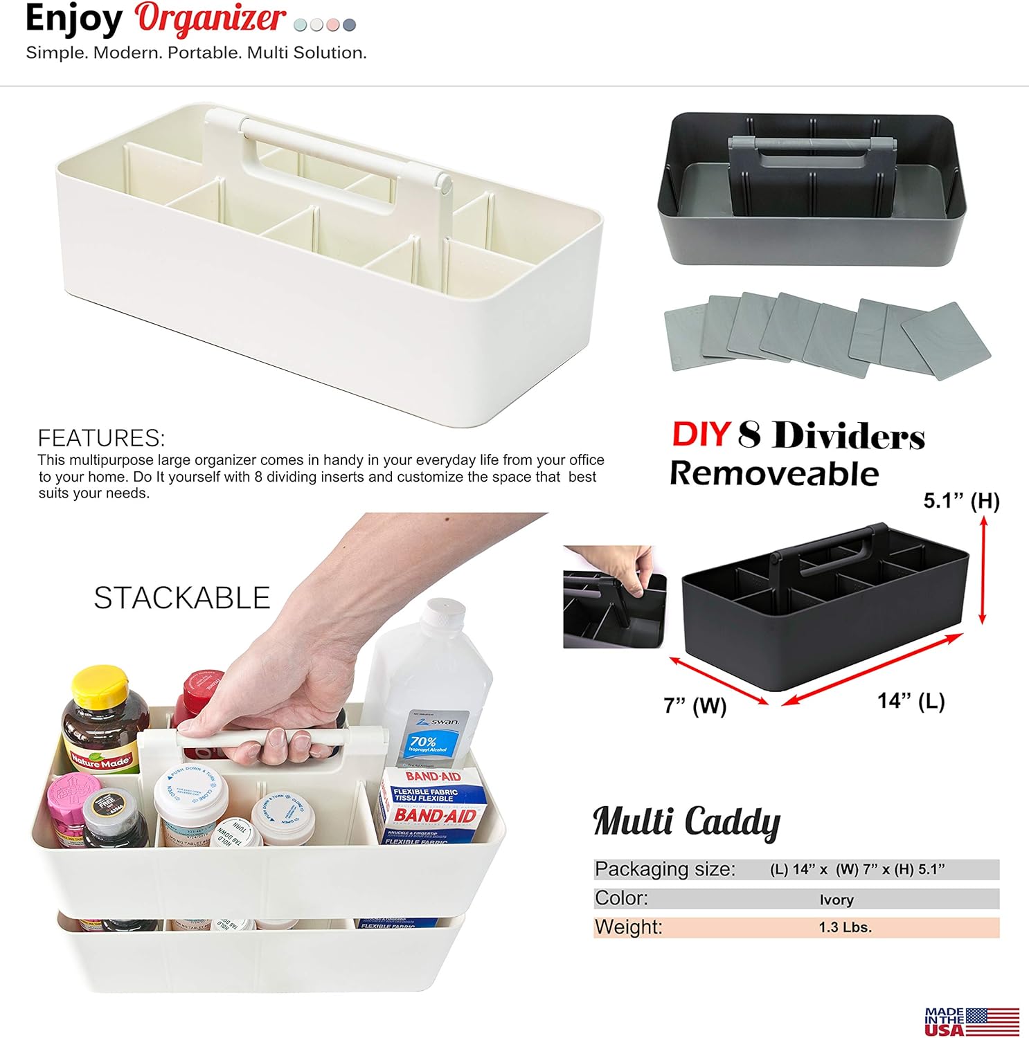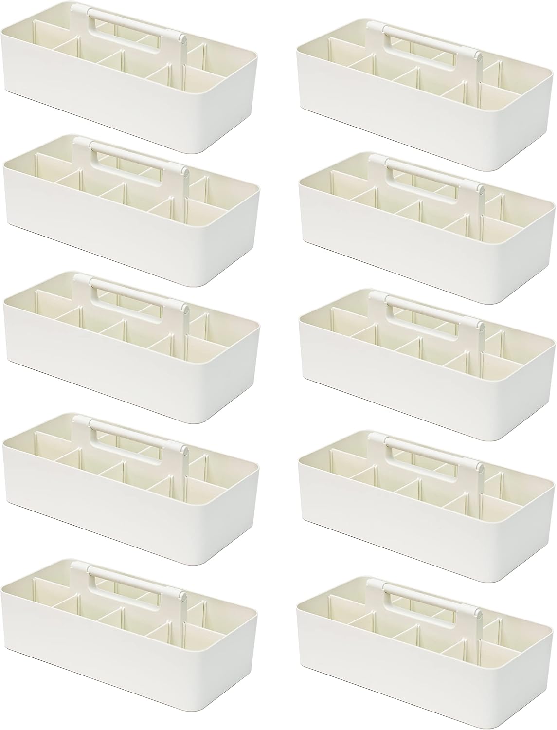 -Large Portable Caddy, DIY Dividers, 8 Compartments, School Office Supplies Home Business Organizer,Portable Basket with Handle Storage Organizer Modern Made in USA (10 PACK, Ivory)