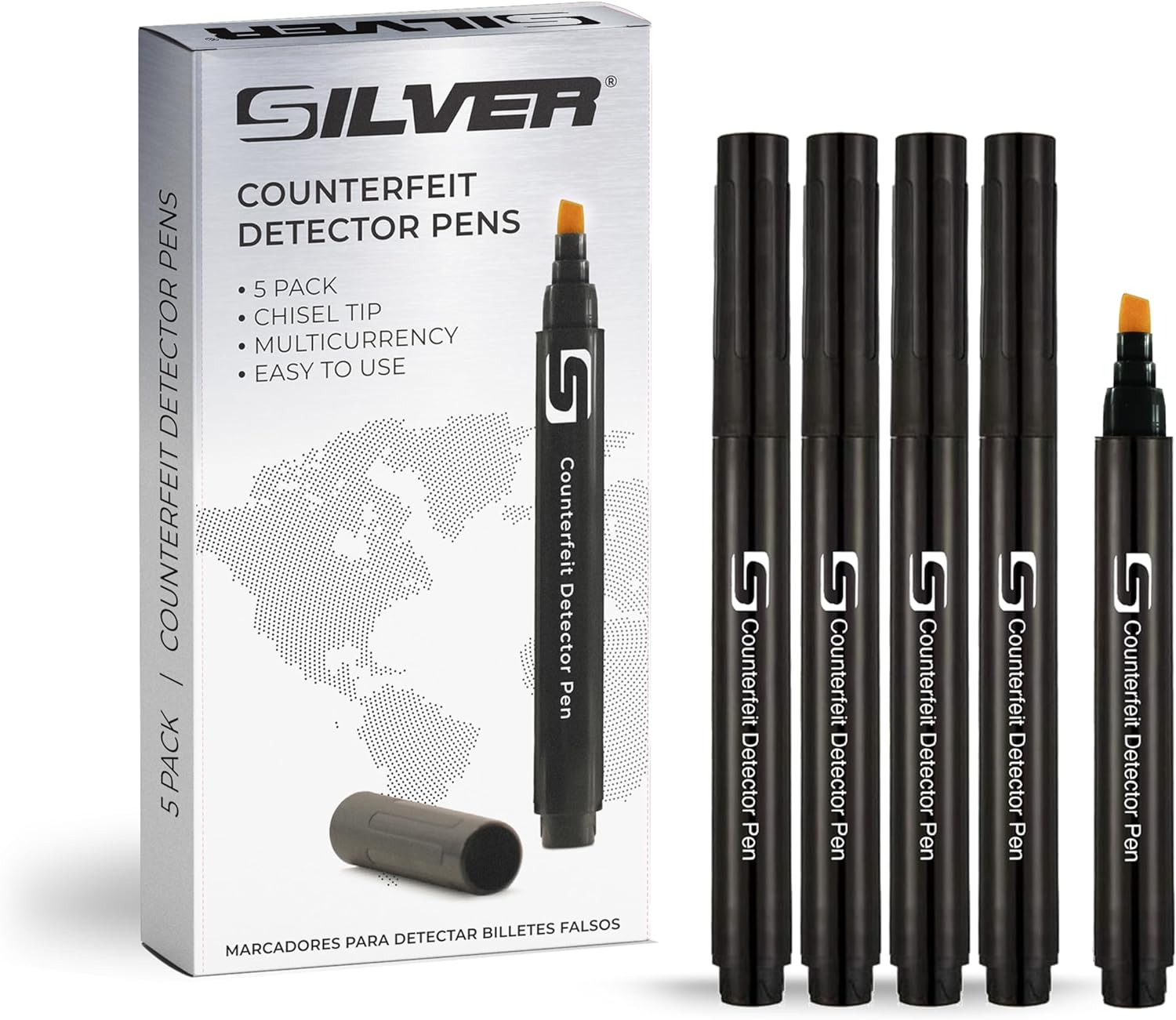 - PACK OF 5: Contains 5 chisel tip Counterfeit Money Detector Pens so that you are always protected. Use the pens at POS Stations, share these with employees, family and friends to protect your bottom line.