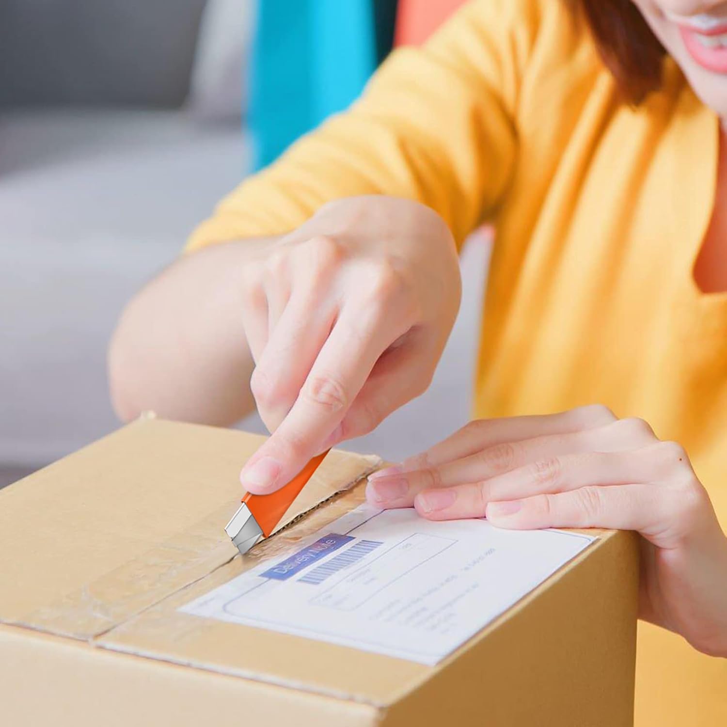DIYSELF 12 Pack Box Cutters, Utility Knife Retractable, Exacto Knife, Box Cutter Knife Metal Sheath, Razor Knife for Packages, Letters and Papers, Utility Knife with Single Edge Razor Blade (Orange)
