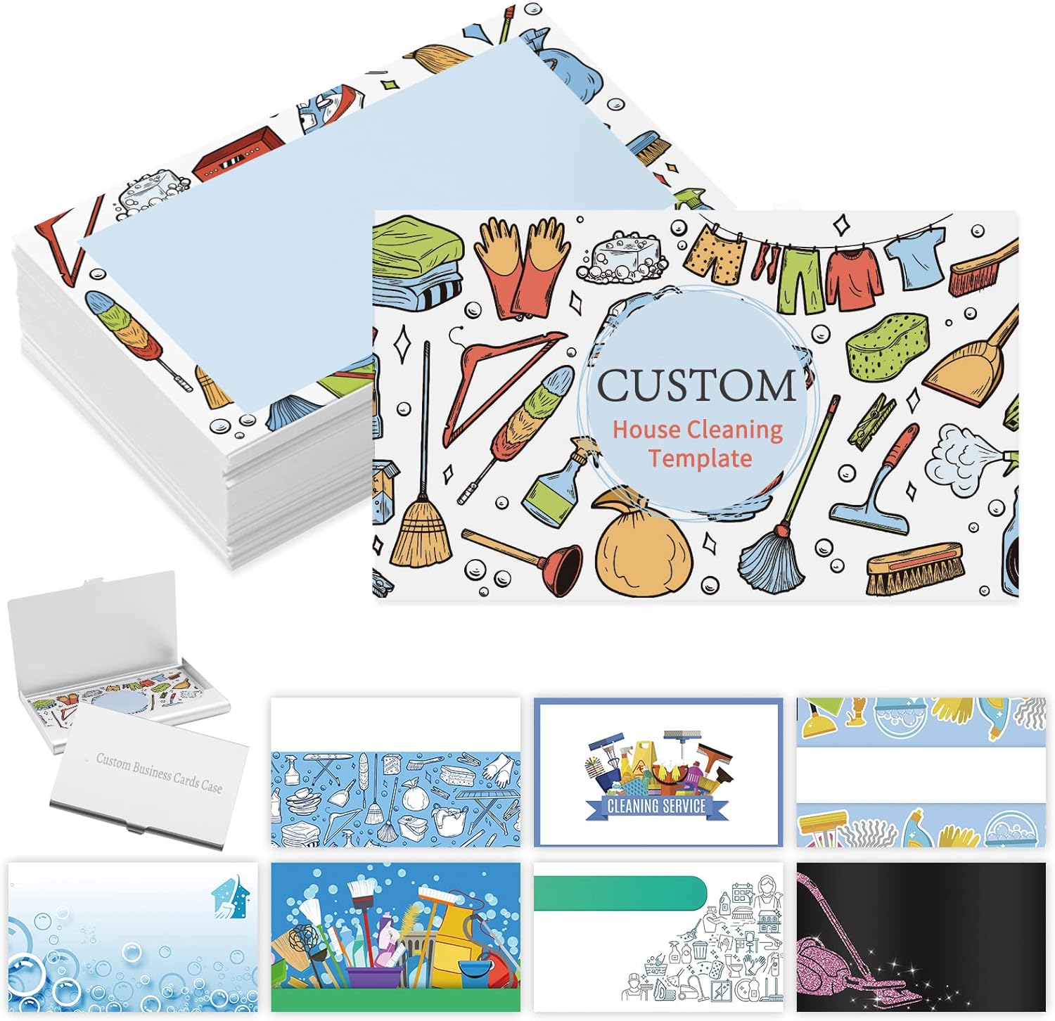 Custom Business Cards with Logo Personalized Double Side Printable Customize Business Cards 1000 500 200 100 for Small Business Women Men-House Cleaning Service