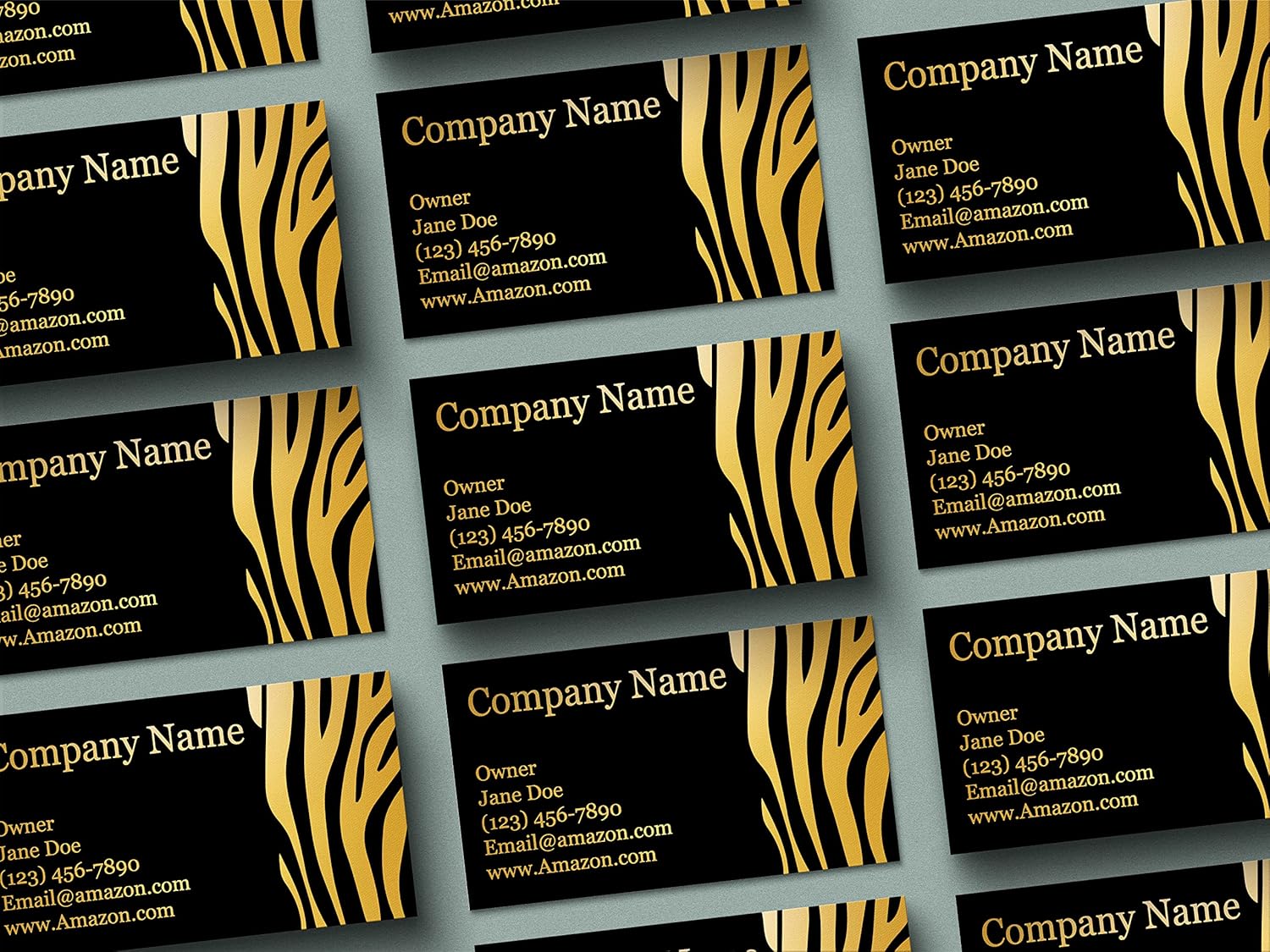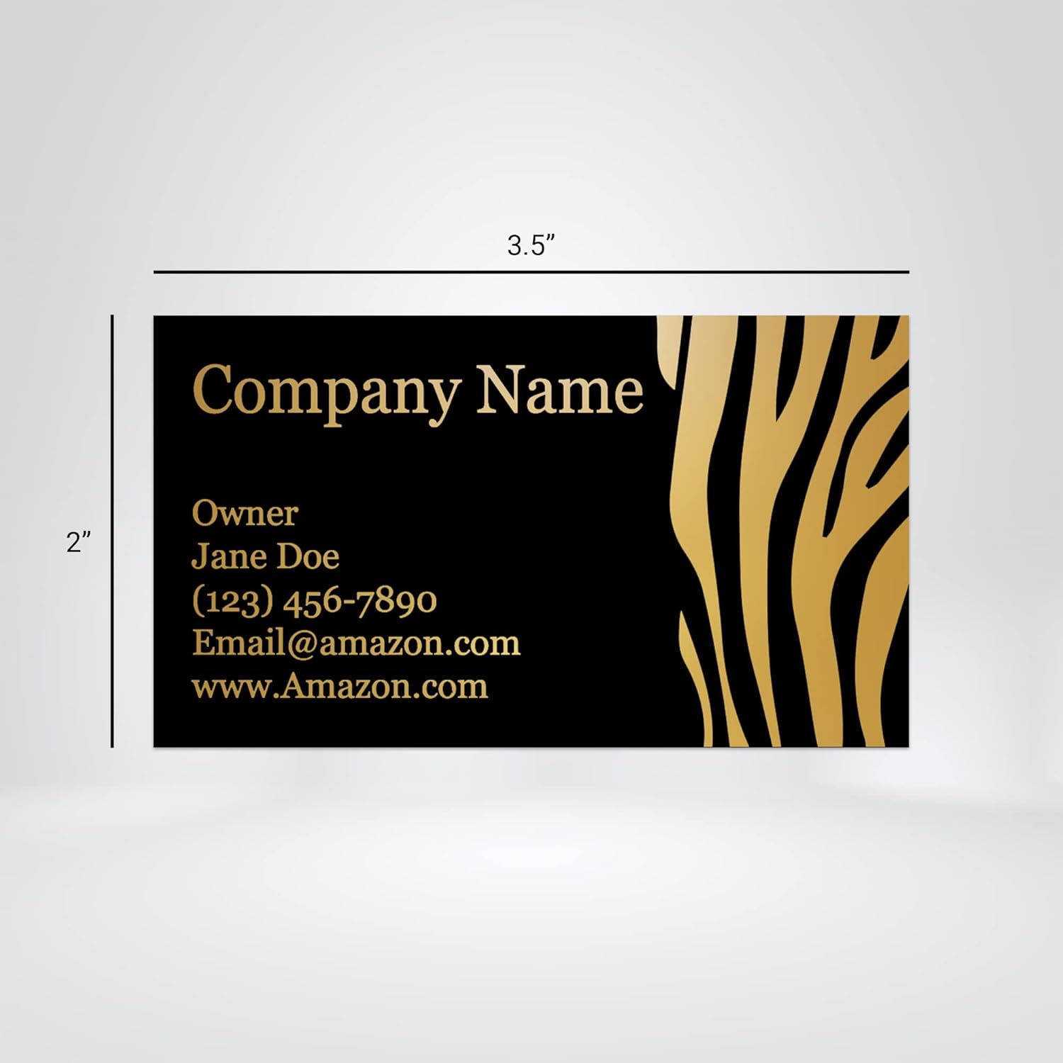 Personalized Gold Foil Black Business Cards 100 Pack - 3.5" x 2" Cards - 14 PT Thick Sturdy Cards - Unique Shiny Gold Foil - Made in the U.S.A. (Gold Zebra)