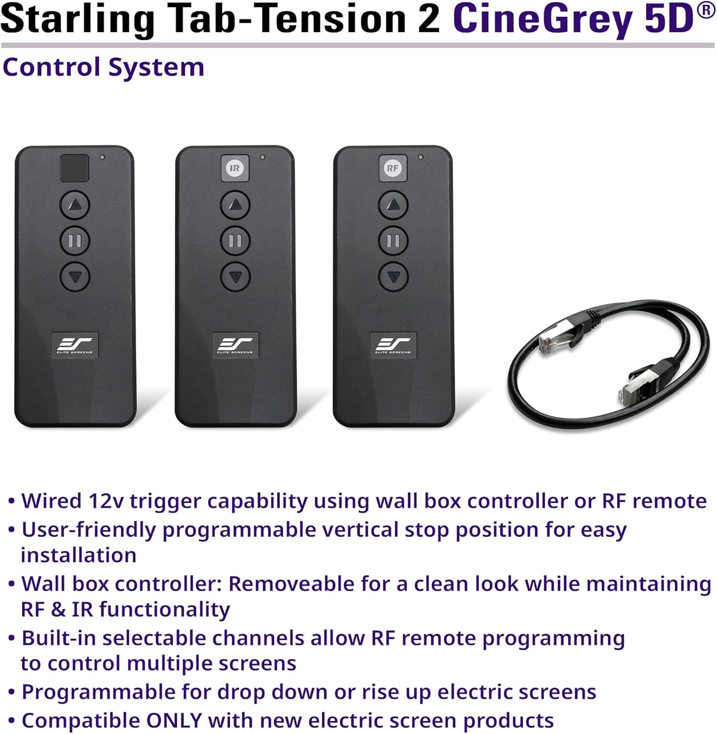 Elite Screens Starling Tab-Tension 2 CineGrey 5D, 120" 16:9, Ceiling and Ambient Light Rejecting Electric Projector Screen Programmed Remote Kit, CineGrey 5D Projection Material, STT120U2HD5-E12