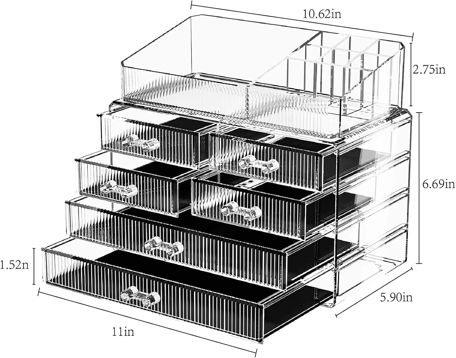 ZHIAI Stackable Storage Drawers, Acrylic Bathroom Counter Organizer Clear Makeup Organizers for Vanity, Kitchen Cabinets, Bathroom, Undersink, Home Organization and Storage (1 Top 6 Drawers)