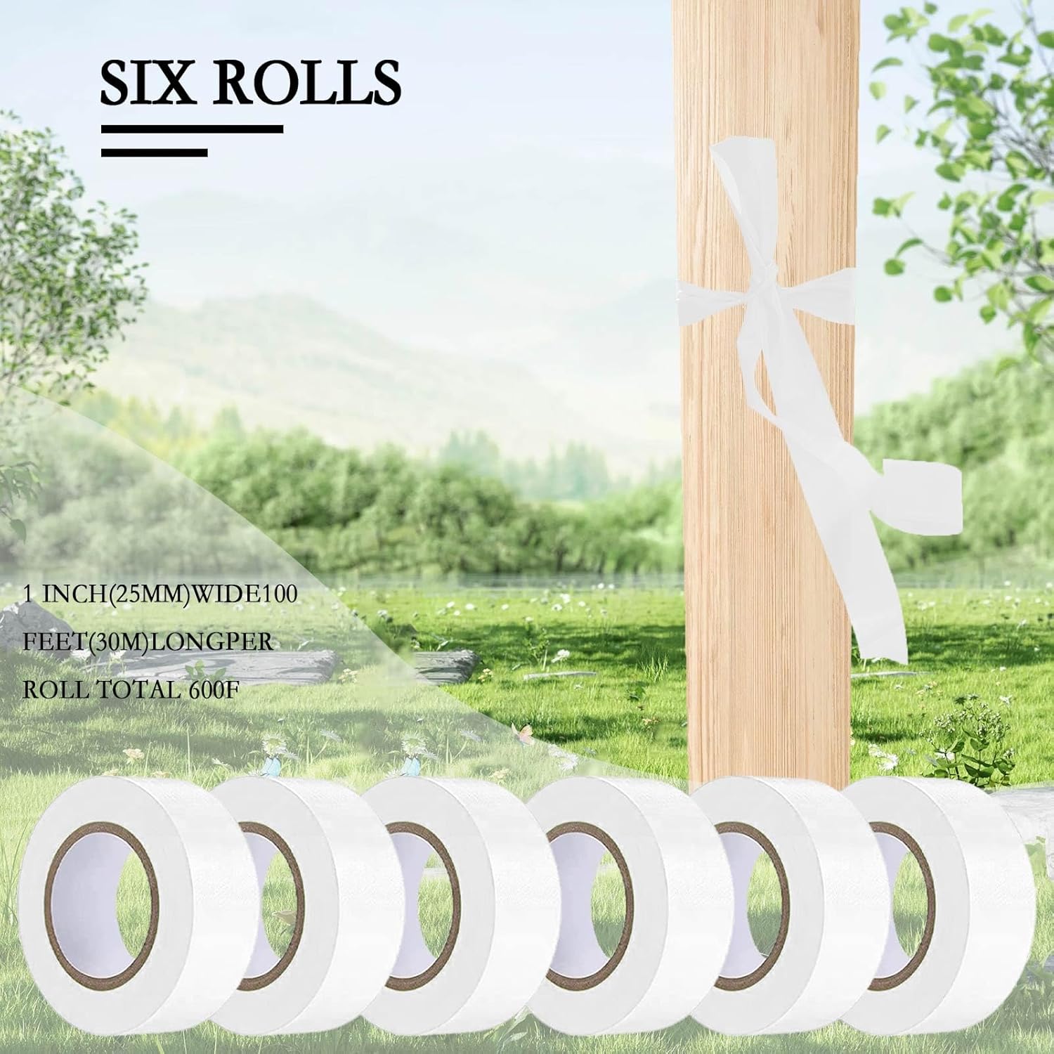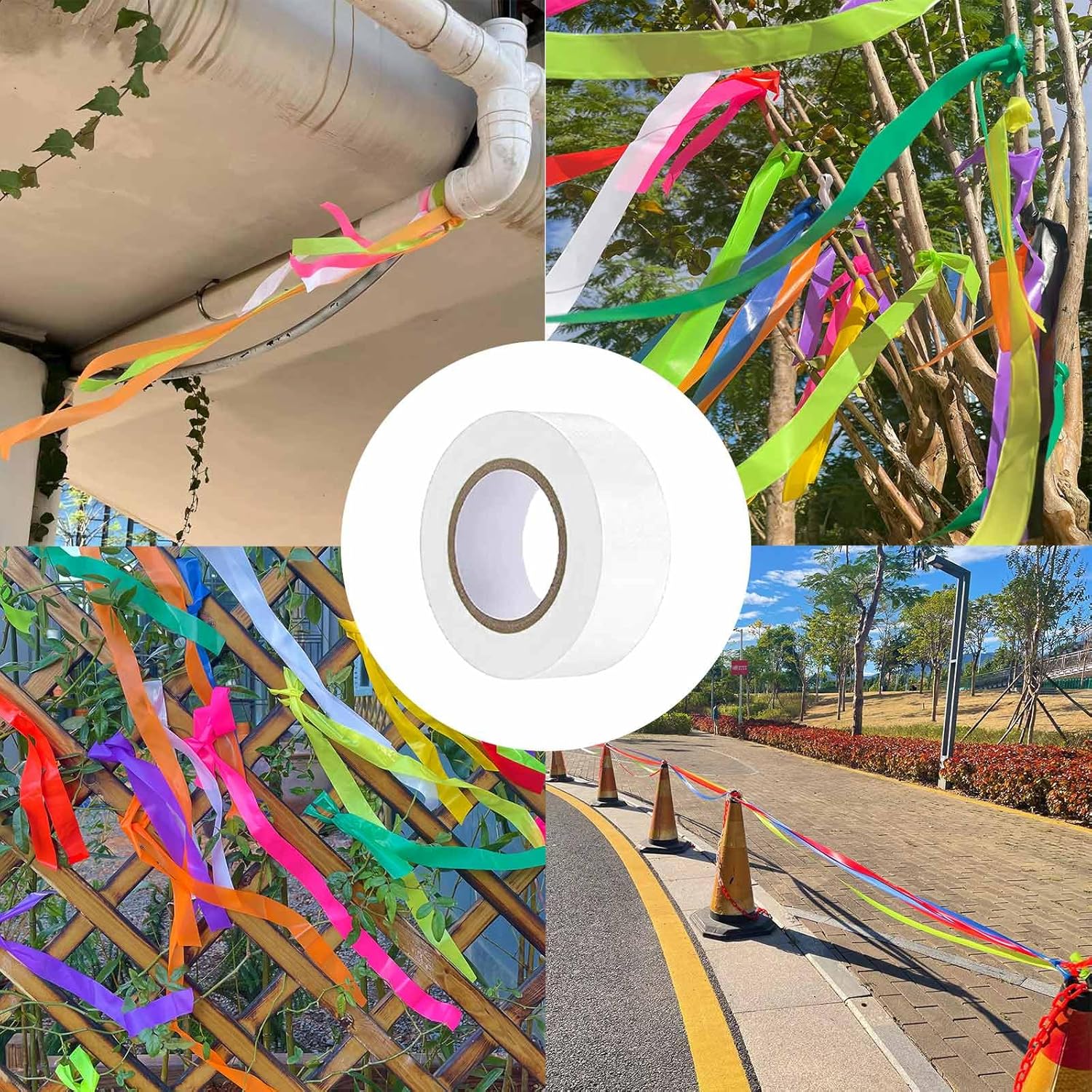 6 Pack White Flagging Tape, Non-Adhesive Plastic Ribbon Neon Marking Roll, 1"*600ft, Marking Tape for Tree Marking, Hunting, Boundaries and Hazardous Areas,Trail Marking