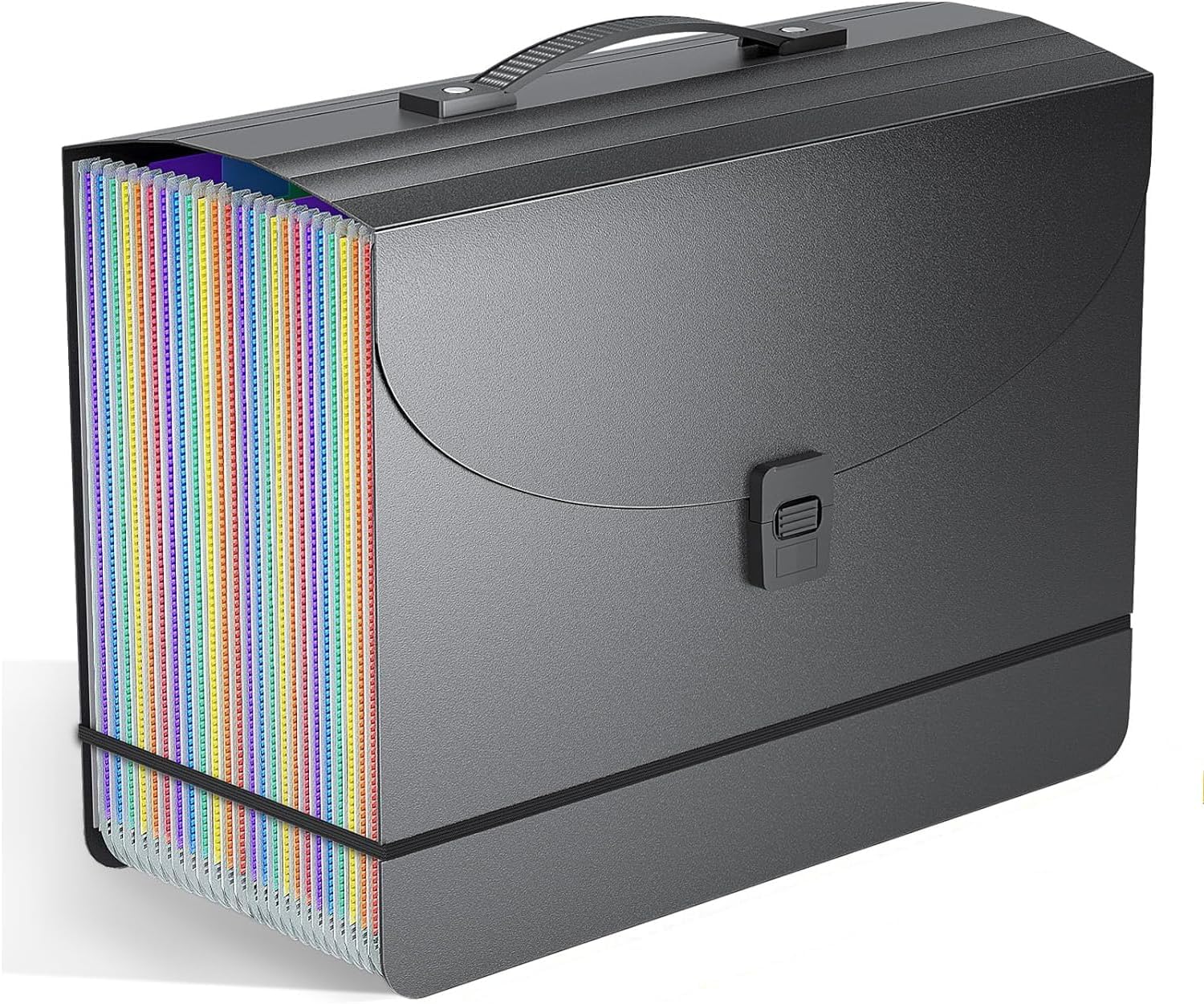 - ✔【SUPERIORITY】25 pockets portable expanding file folder with durable ergonomic handle, plus a convenient and practical buckle, a concombination of traditional and modern design, give people a different visual feast and a different sense of experience.