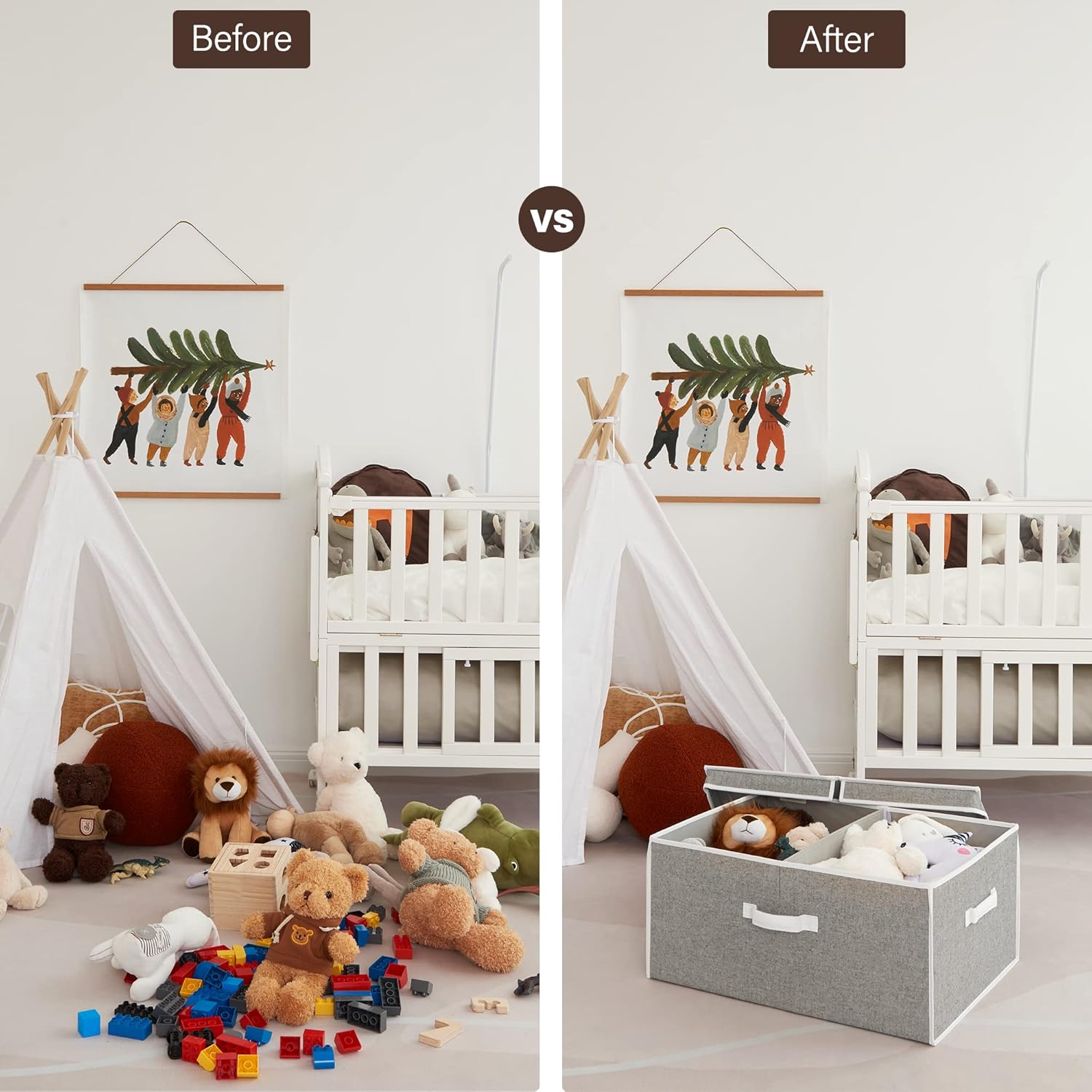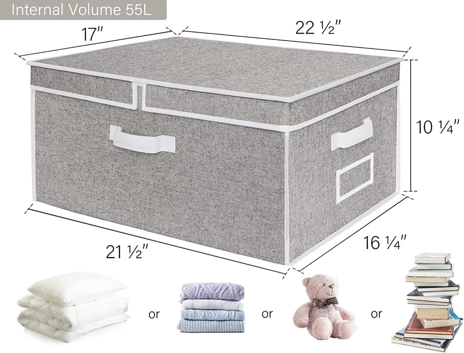 - Large Capacity: Served as the closet storage organizer, the 55L extra large fabric storage bins with lids are ideal for storing large blankets, seasonal clothes, sweaters, bedding, toys, etc.