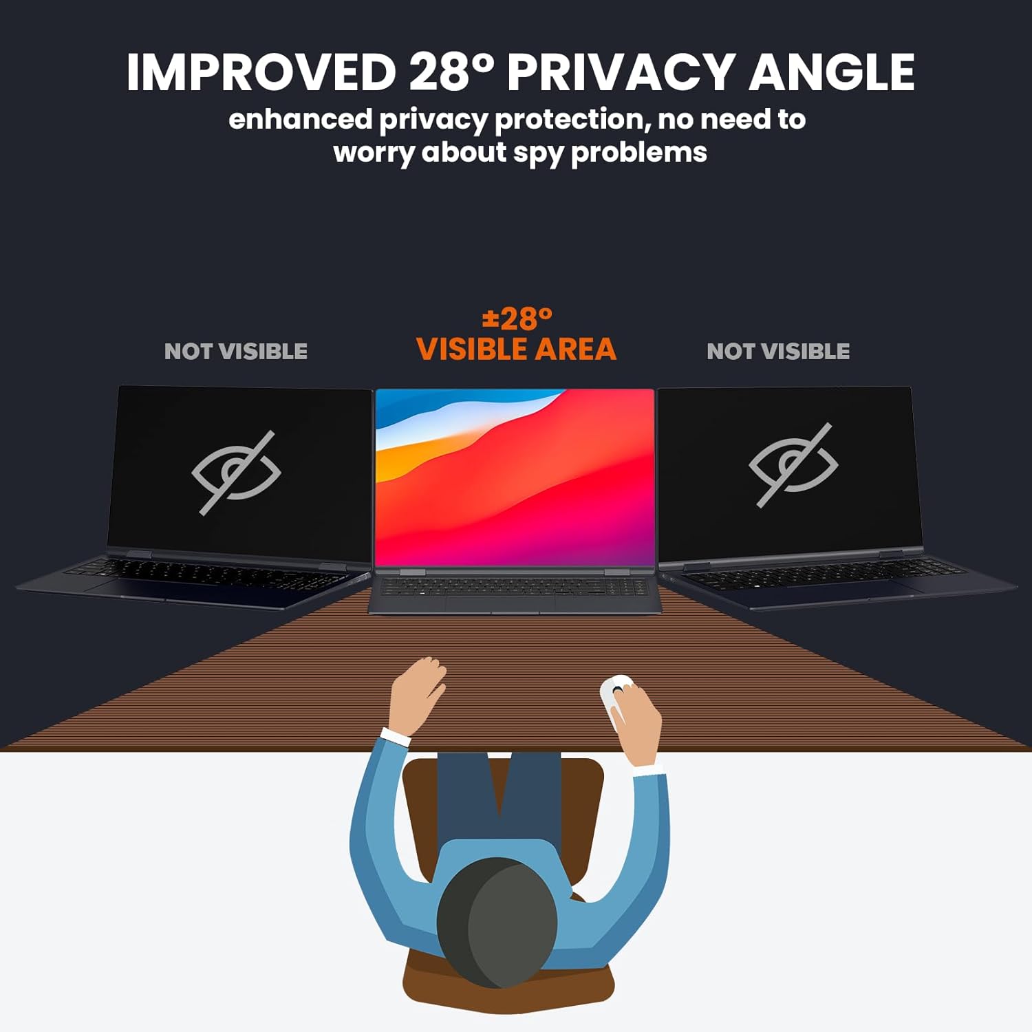 - Upgraded HD Privacy Filter: We understand the importance of clarity in the laptop privacy screen. Through 10 years of persistant research and upgrade, GUDTEKE finally produced a higher clarity screen privacy shield with the true 28°privacy angle which is better than those 30°ordinary privacy filter in the market. restoring the original clarity of the screen, to solve the problem of damaged clarity after you paste the laptop screen privacy shiled, provide you a more comfortable visual space