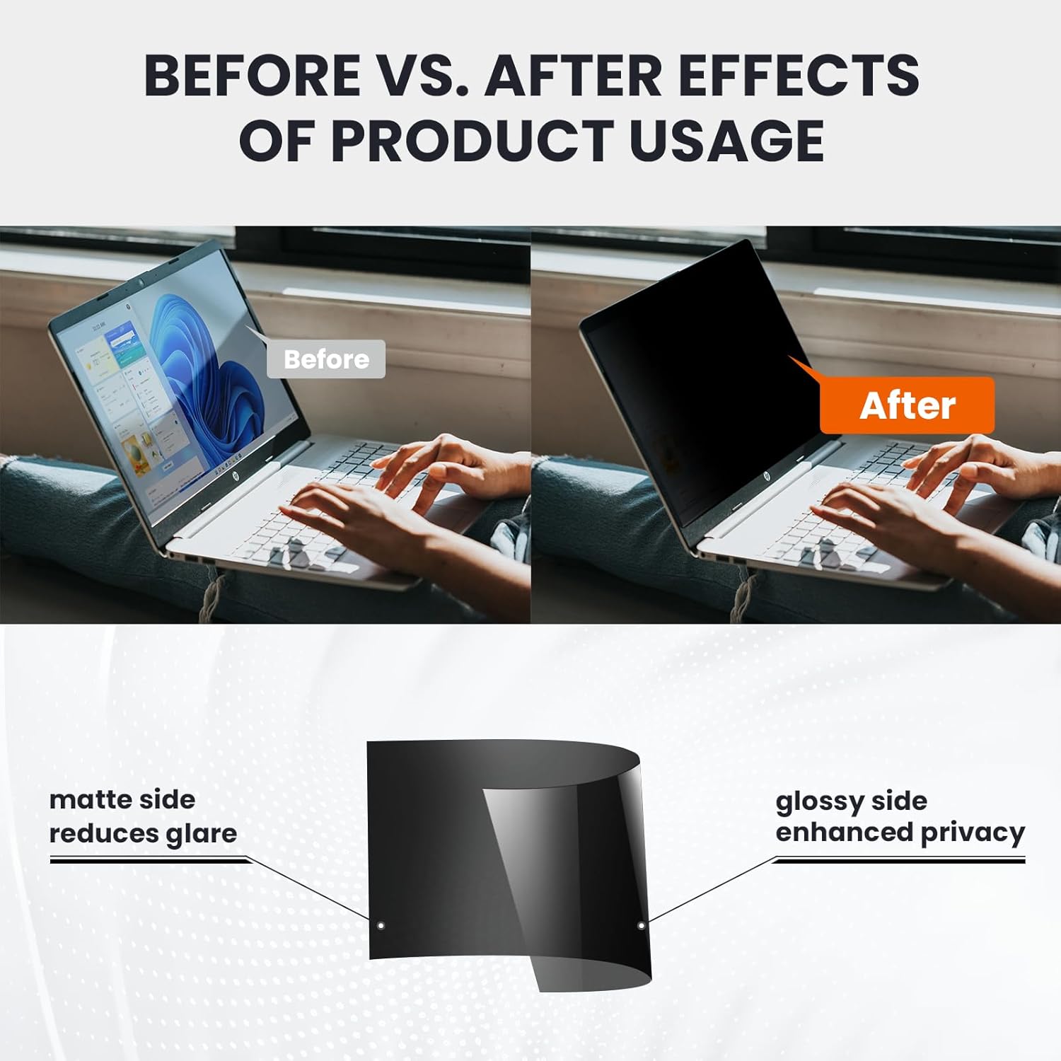 - Improved Privacy Screen for Computer Monitor: GUDTEKE 13.3 inch privacy screen for laptop features micro-louver technology that limits the viewing angle to +/- 28 degrees, if you look at it from the side, the larger the angle, the darker the screen, but bright when looking directly at it, you can confidently work on sensitive materials without worrying about unauthorized viewing, It is a reversible privacy shield, A matte finish resists glare, while a glossy is more privacy-resistant