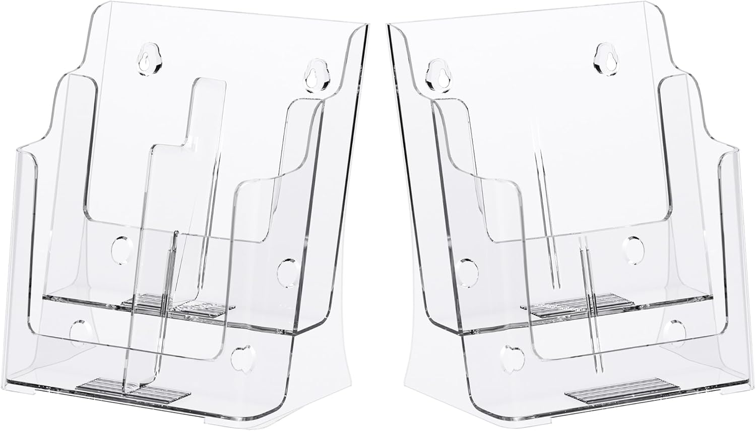 zavekia 2 Pack 2 Tier Acrylic Brochure Holder 8.5 x 11 inch, Clear Literature Organizer Magazine Stand with Removable Divider for 4 x 9 inch Brochures,Magazine Holder,Flyer Holder