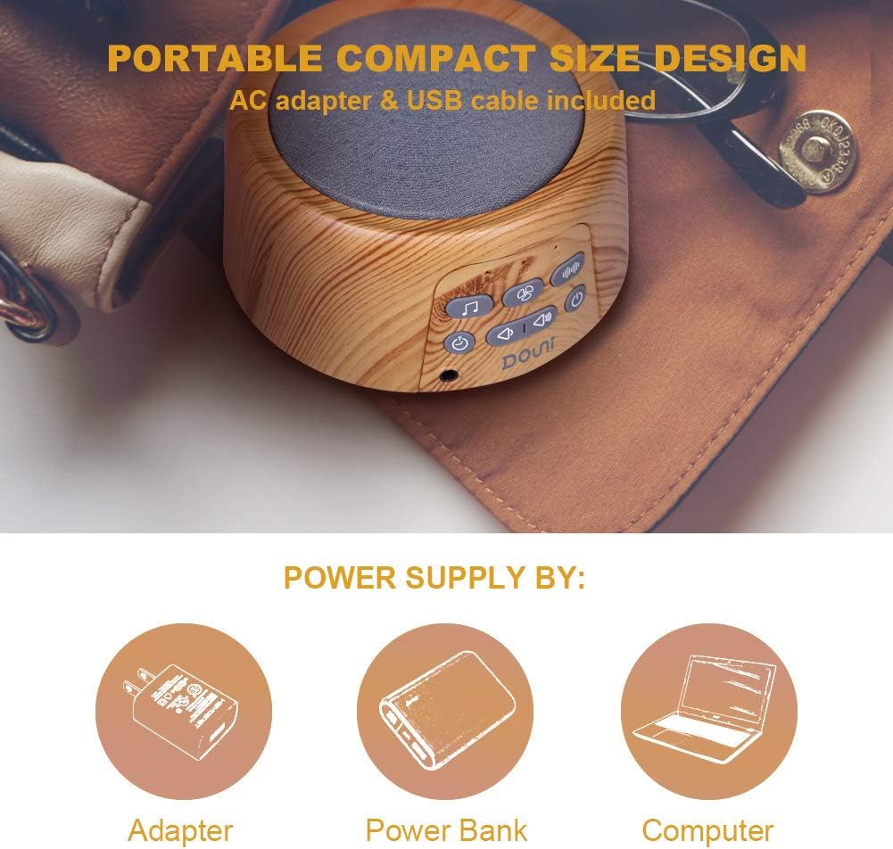 DOUNI White Noise Machine with 27 Soothing Sounds Timer, Adjustable Volume, Memory Function for Sleeping, Relaxation,Sound Machine for Kid,Adult,Nursery,Home,Office,Travel.Wood Grain