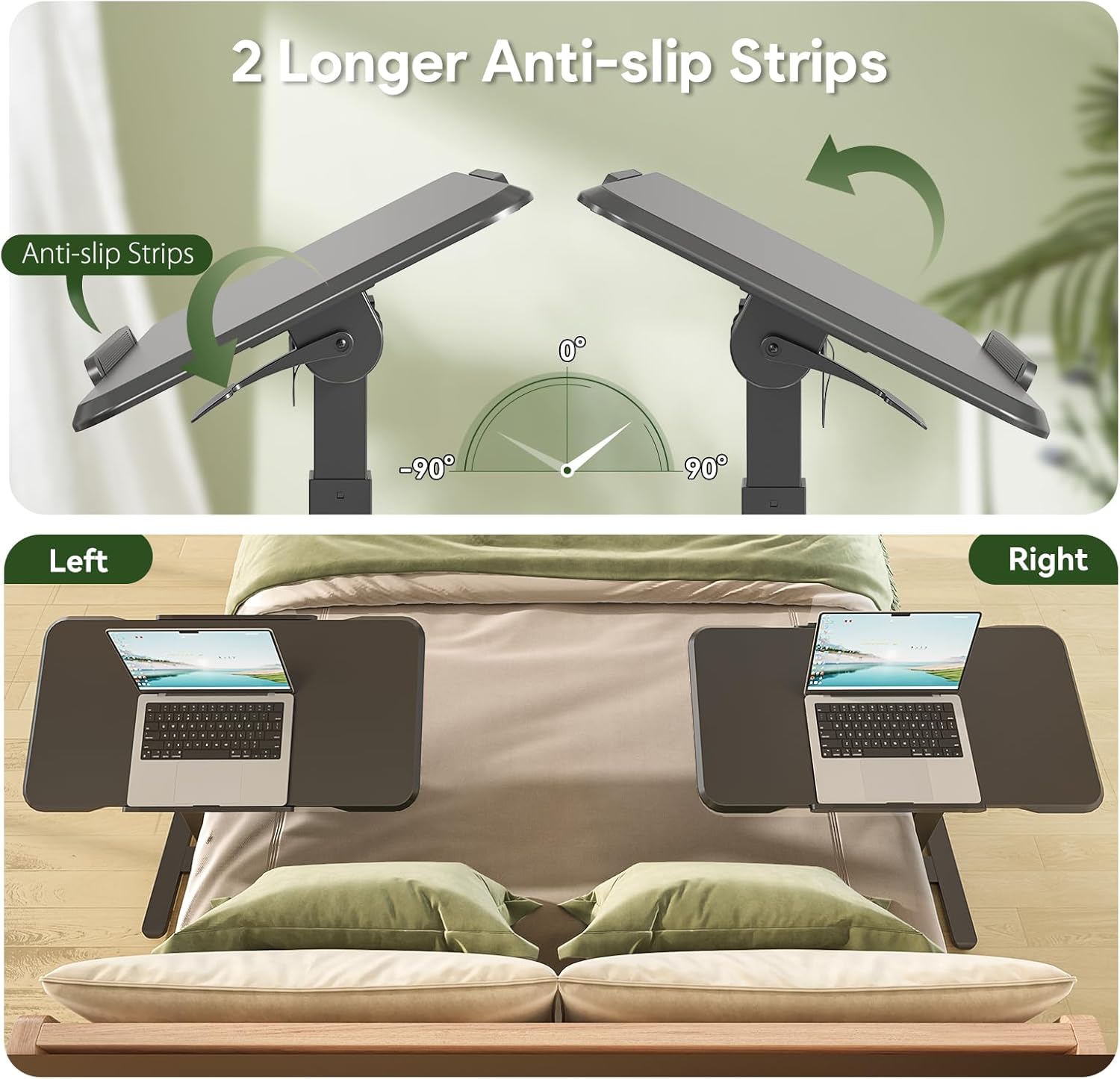 - 180° Tiltable Desktop:The small standing desk is designed with a tiltable board, supporting 0°-180° flip, can be used on both left and right side. 2 longer anti-slip strips(22.4") can prevent computer and mouse from slipping.You can choose to install 2 or 1 blocking strip according to your usage needs
