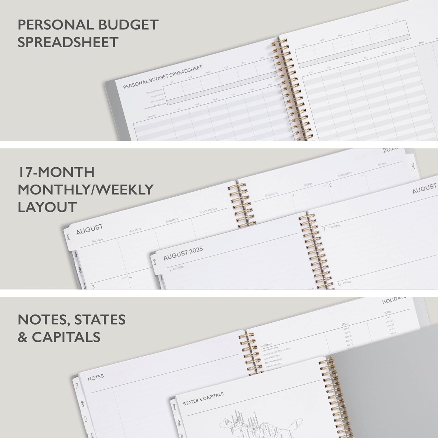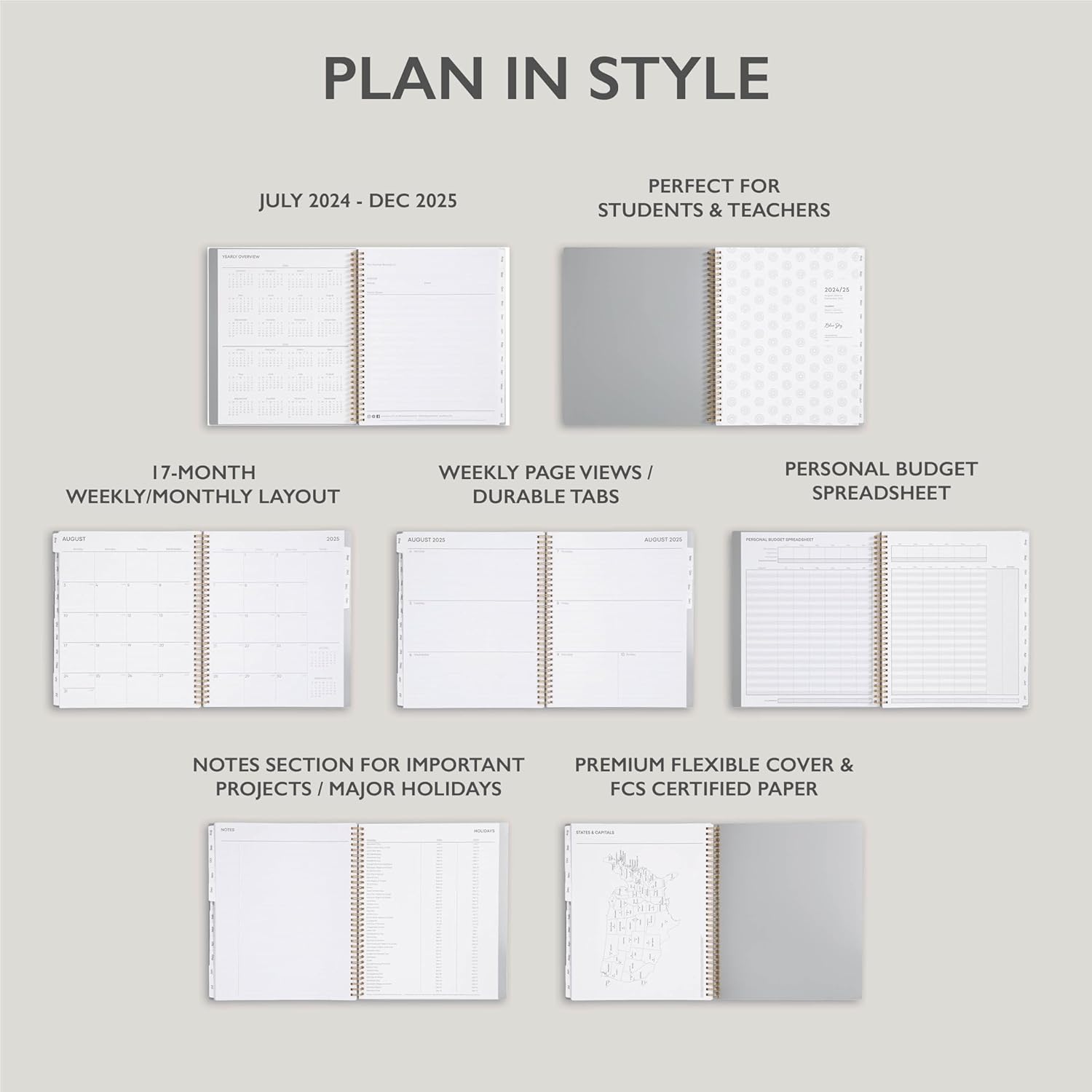 - August 2024 - December 2025 planner with 17 months of monthly and weekly pages for easy academic planning and scheduling