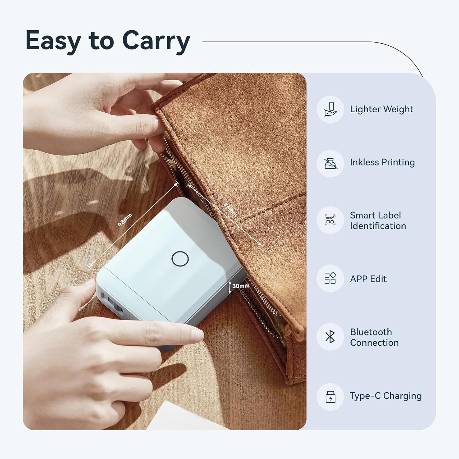 - New Upgrade: NIIMBOT D110 mini bluetooth labeler measuring just 149g. Smaller and smarter than the D110 label maker, experience true and portable mini! Wireless bluetooth label maker can slip into your pocket. The compact and lightweight design makes it easy to carry store, and print labels and stickers anytime, anywhere. Keeps your life and business tidy