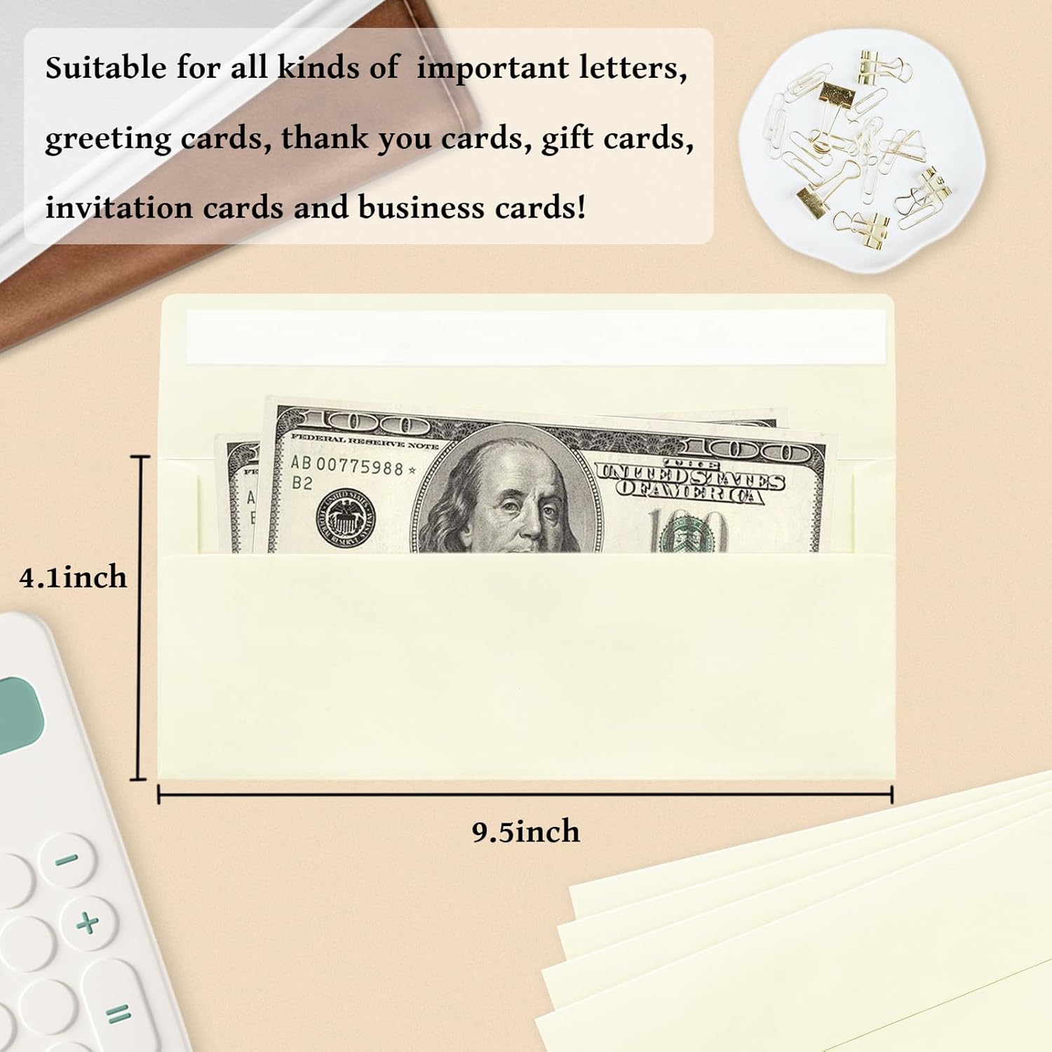 - 【Ivory #10 Business Envelopes】These #10 business envelopes feature a ivory color. The envelopes kit contains 50 pieces 4 1/8 x 9 1/2 Inches ivory envelopes, perfect for your office or home purposes