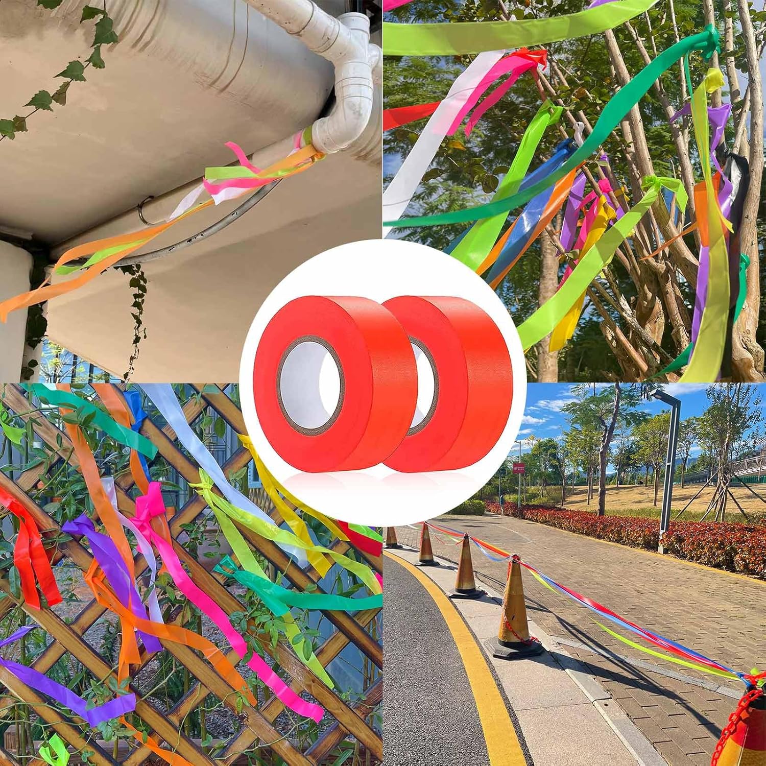 - Mutiple uses: These tapes can used as surveyors tape, property line markers, do not enter tape, barrier tape, garden tape, construction tape, trail markers.