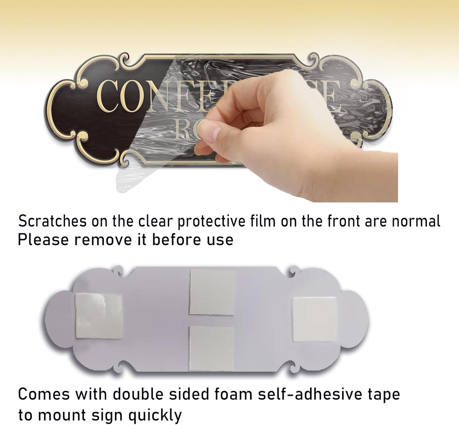 9x3 Inch Conference Room Sign Black Gold Self-stick Doorplate for Offices Businesses Restaurants House Room