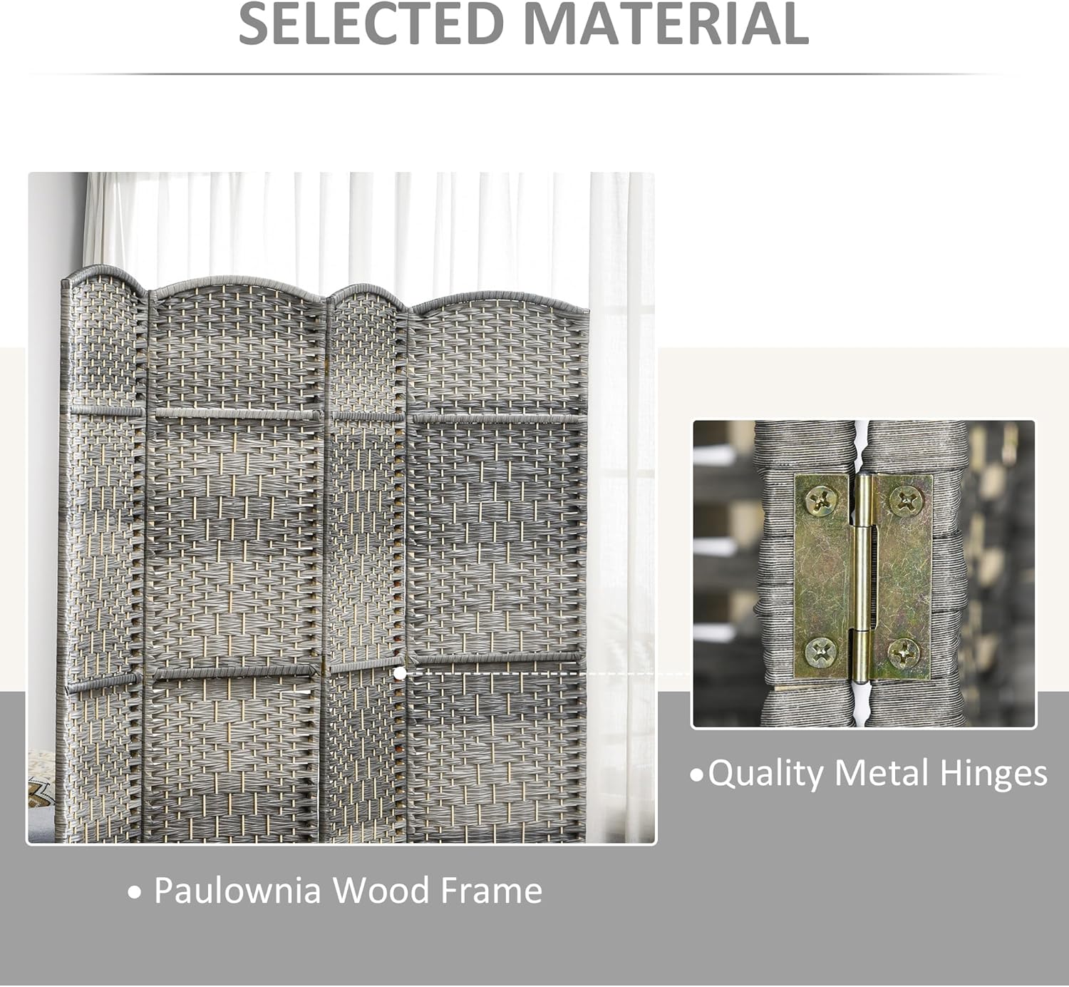 HOMCOM 3 Panel Room Divider, 6' Tall Folding Privacy Screen, Hand-Woven Freestanding Wall Partition for Home Office, Bedroom, Mixed Gray