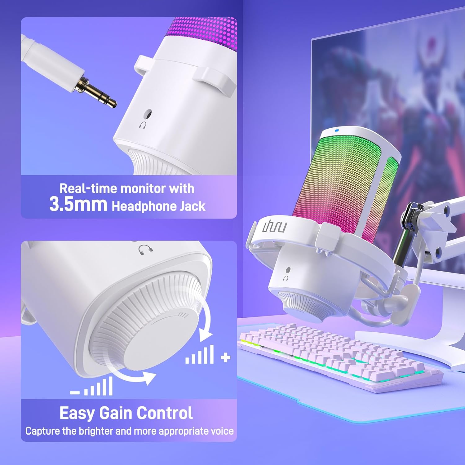 UHURU Gaming USB Microphone for PC: Streaming Computer Mic with Noise Cancellation - Condenser Mic with Controllable RGB for Gaming Streaming