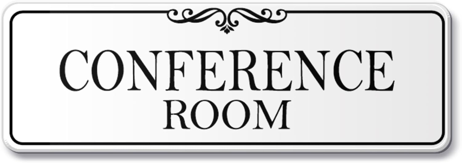 9x3 Inch Conference Room Sign, Acrylic Self-stick Door Wall Signage (Elegant White)