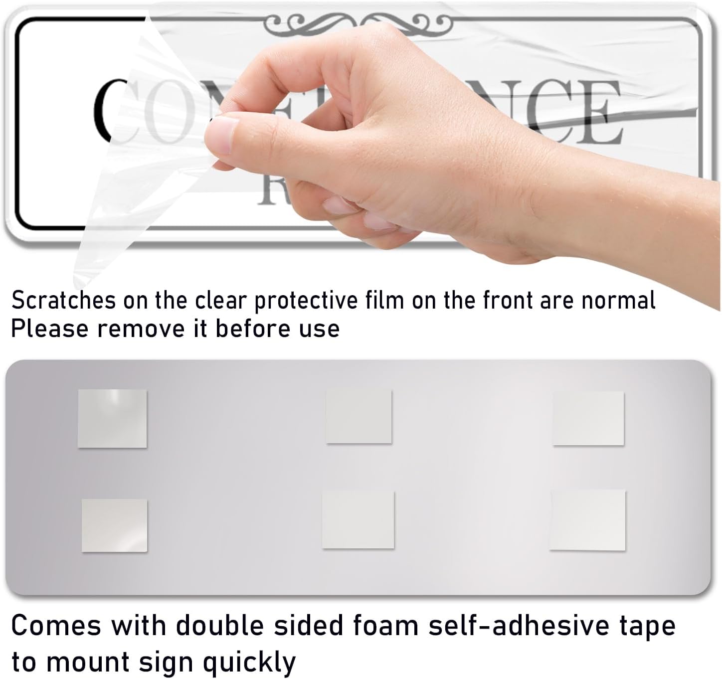 - TIP: Each sign is covered with a clear protective film on the front that provides protection from scratches. Please check carefully and remove it before using it.