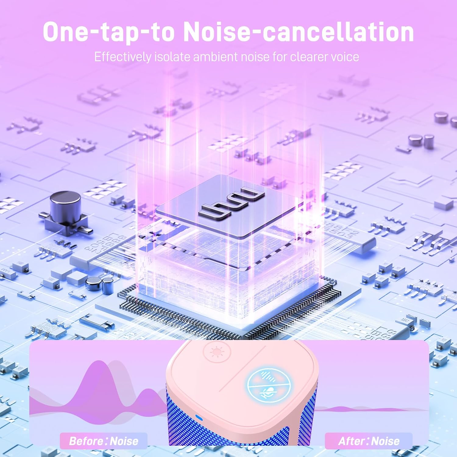 - One-tap-to Noise-cancellation: The USB microphone is equipped with a professional chipset of ENC noise-cancellation.When you are in a noisy environment, just tap the noise reduction button, and the noise will be instantly isolated, leaving only clear and pure sound, allowing your voice to penetrate the fog of noise and clearly convey every word and every sentence
