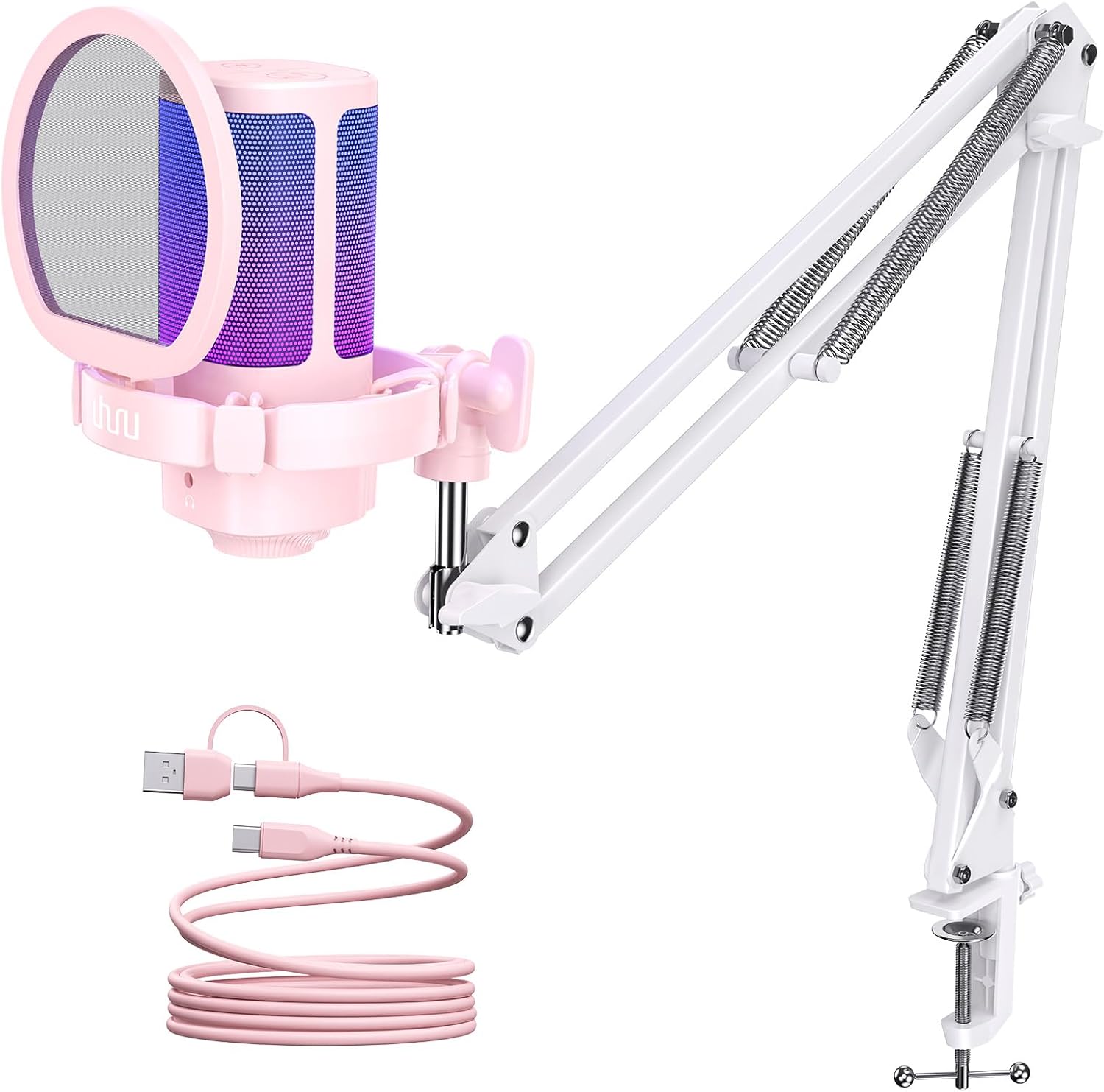 - Package Contents: The UM2S package comes with a gaming microphone, Boom Arm Stand,5.9ft USB A&C to USB-C 2-in-1 Cable, Shock Mount, Pop Filter, and User Manual