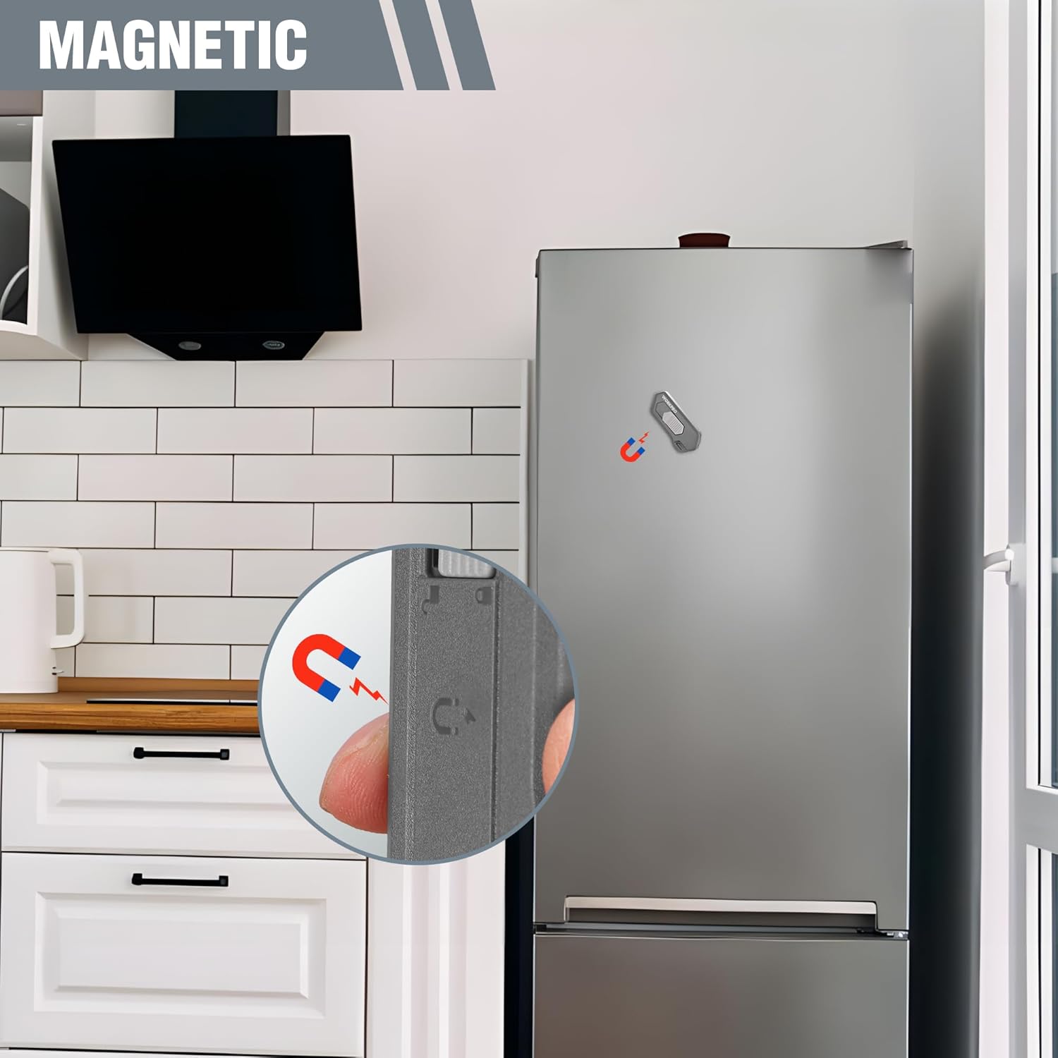 - Quick Change Blade with Easy Storage : It is easy to open the knife by the switch and change the blade. A convenient storage available for an extra blade in the body. Magnetic for hanging on metal fridges and so on. Bonus double-use blades include.