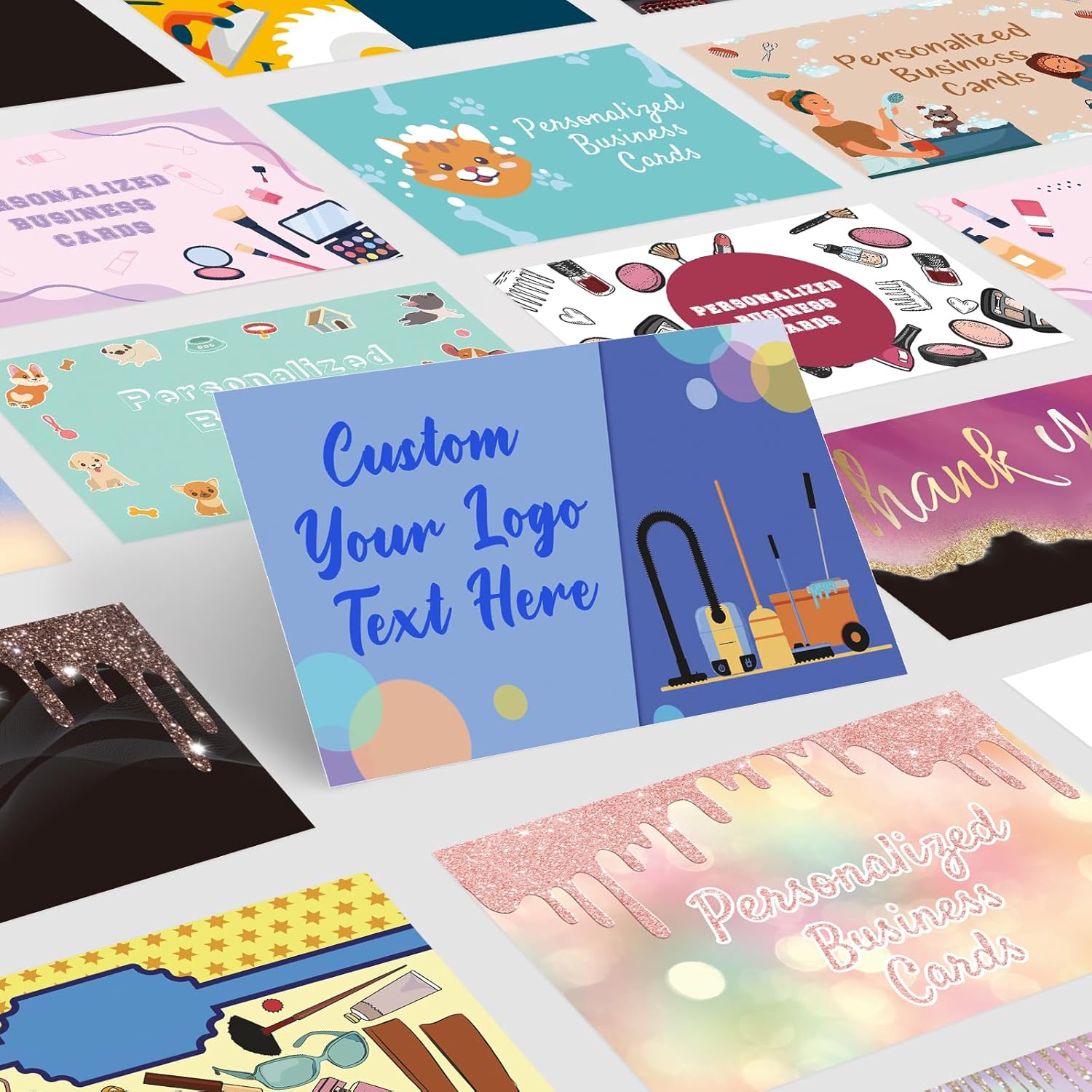 Custom Business Cards Customizable with Logo Text,Personalized Business Cards Photo Printable Cleaning Cards 1000 500 200 100 Double Sided Customize Cards for Small Business Waterproof
